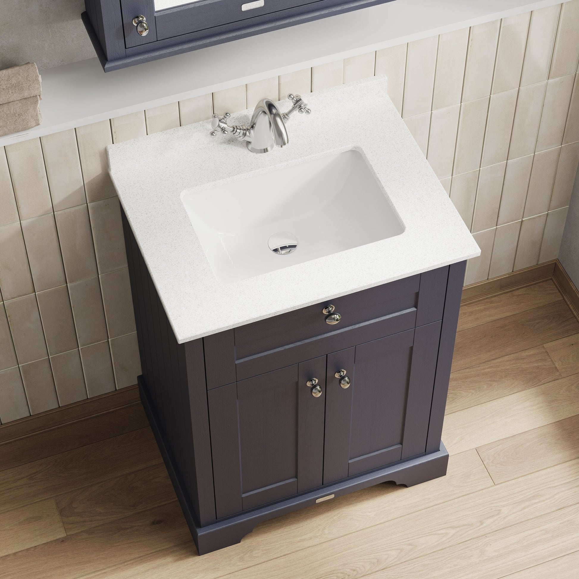 Old London Old London Twilight Blue Floor Standing 2 Door Vanity Basin Unit with Square Basin & 1 Tap Hole Marble Top, 600mm - Twilight Blue