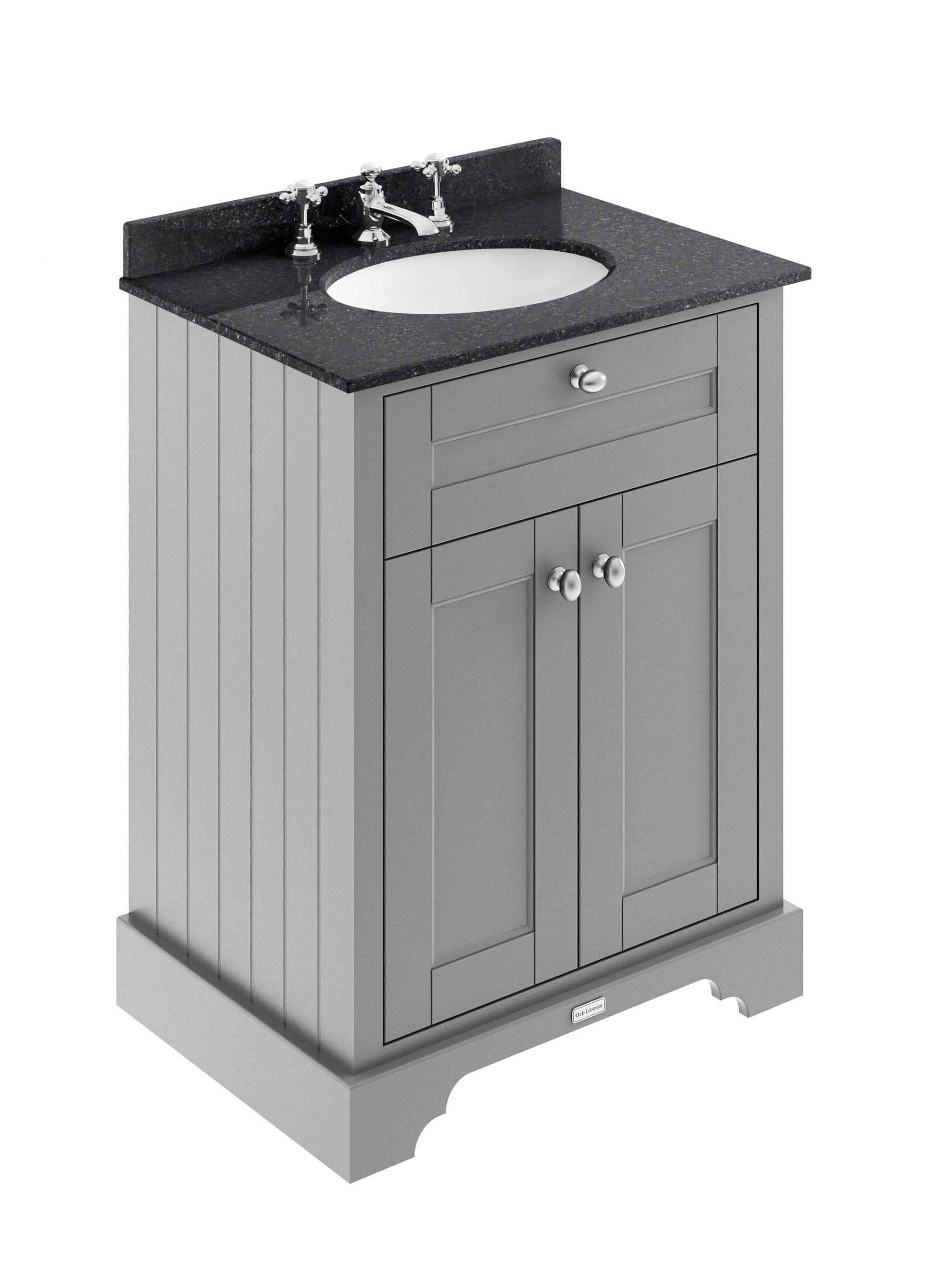 Old London Floor Standing 2 Door Vanity Unit with 3 Tap Hole Black Marble Top 600mm - Storm Grey