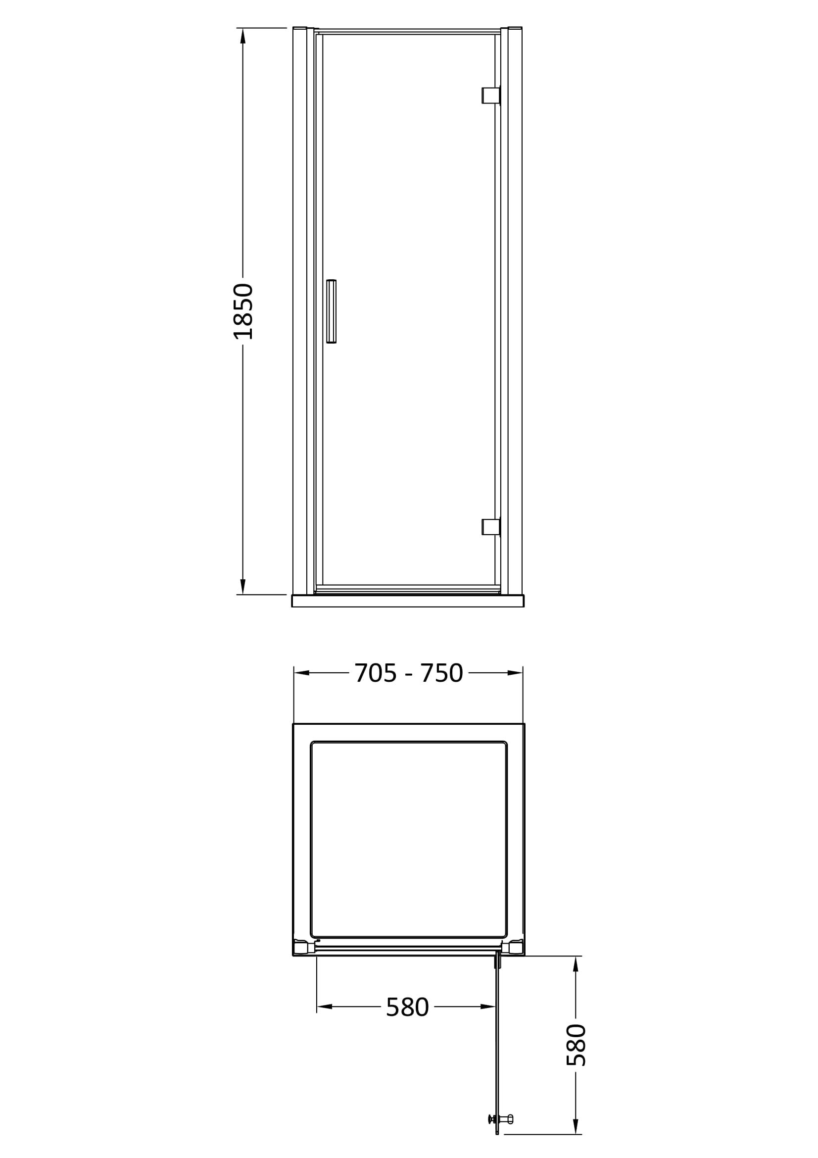 Hudson Reed Pacific 750mm Hinged Shower Door