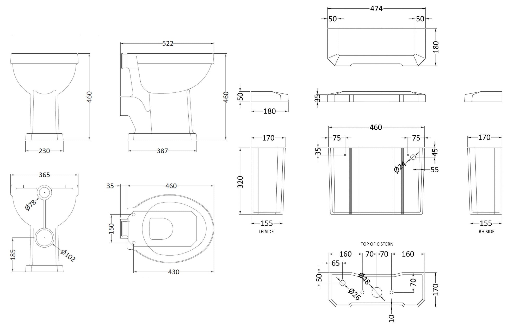 Old London Richmond Comfort Height Low Level WC & Flush Pipe
