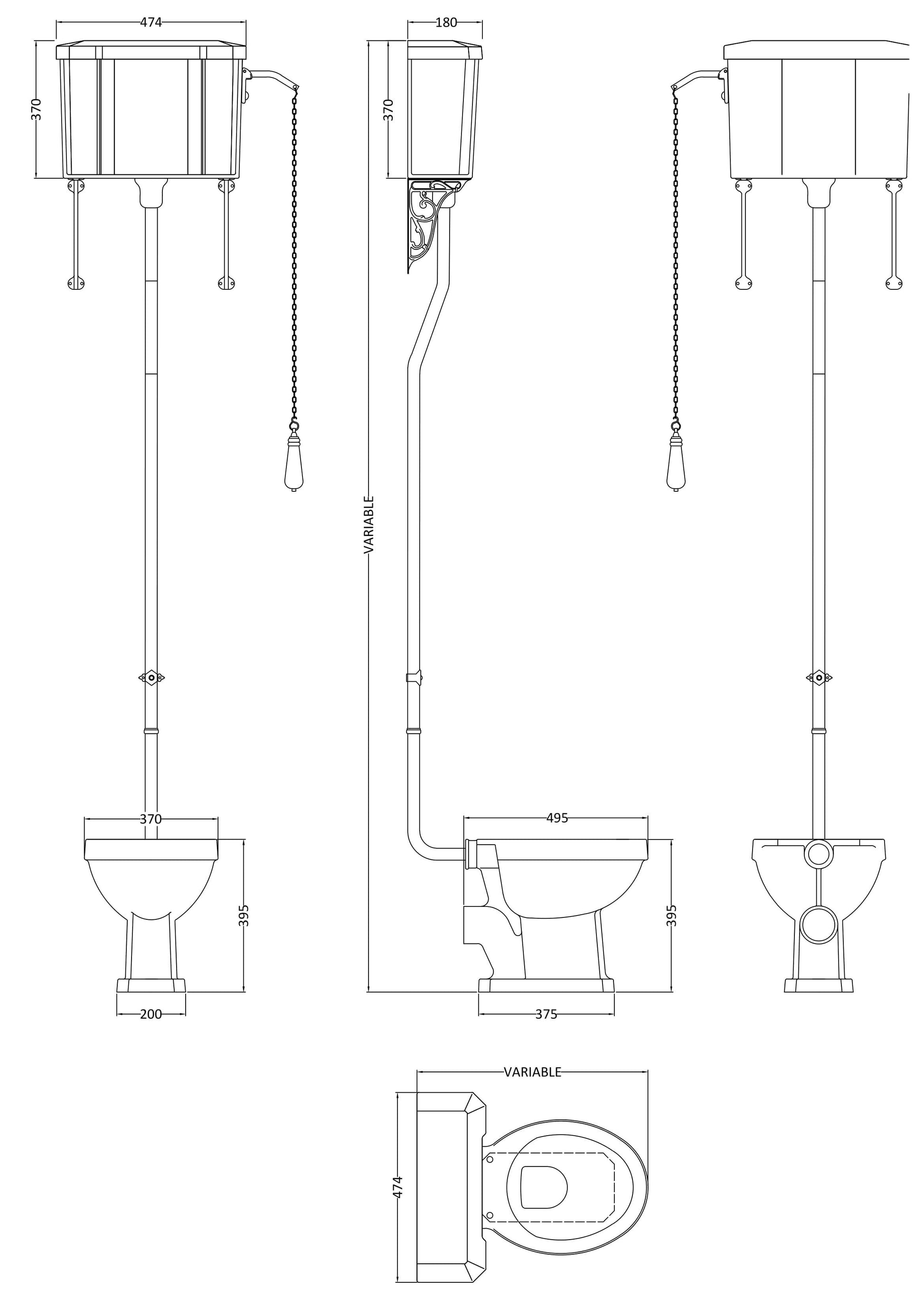 Old London Richmond High Level Pan, Cistern & Flush Pipe Kit