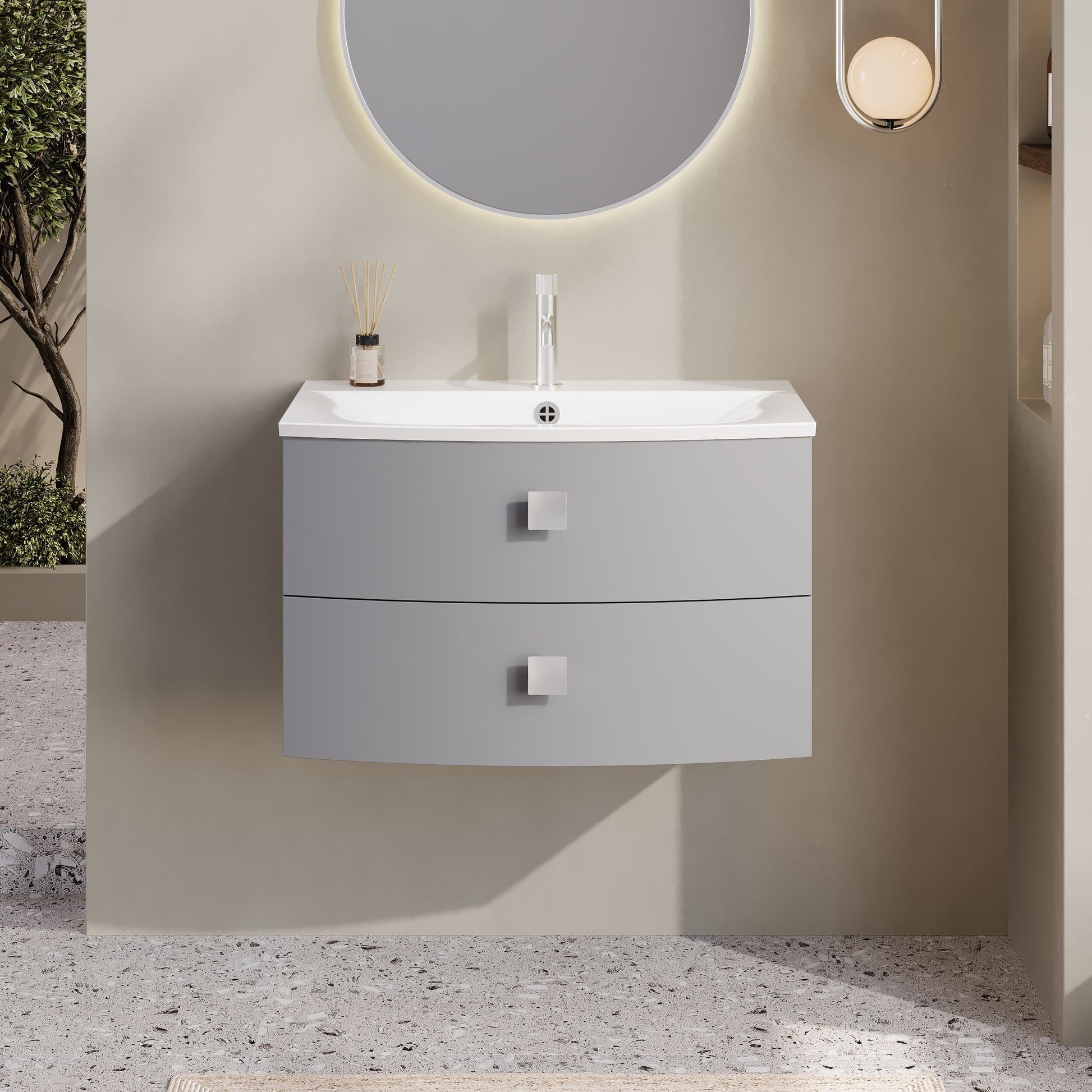 Hudson Reed Sarenna 700mm Dove Grey Wall Hung 2 Drawer Vanity Unit with Polymarble Basin