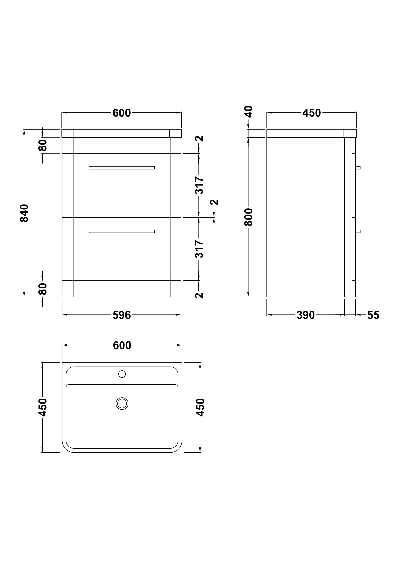 Hudson Reed Solar 600mm Indigo Blue Floor Standing 2 Drawer Vanity Unit With Polymarble Basin