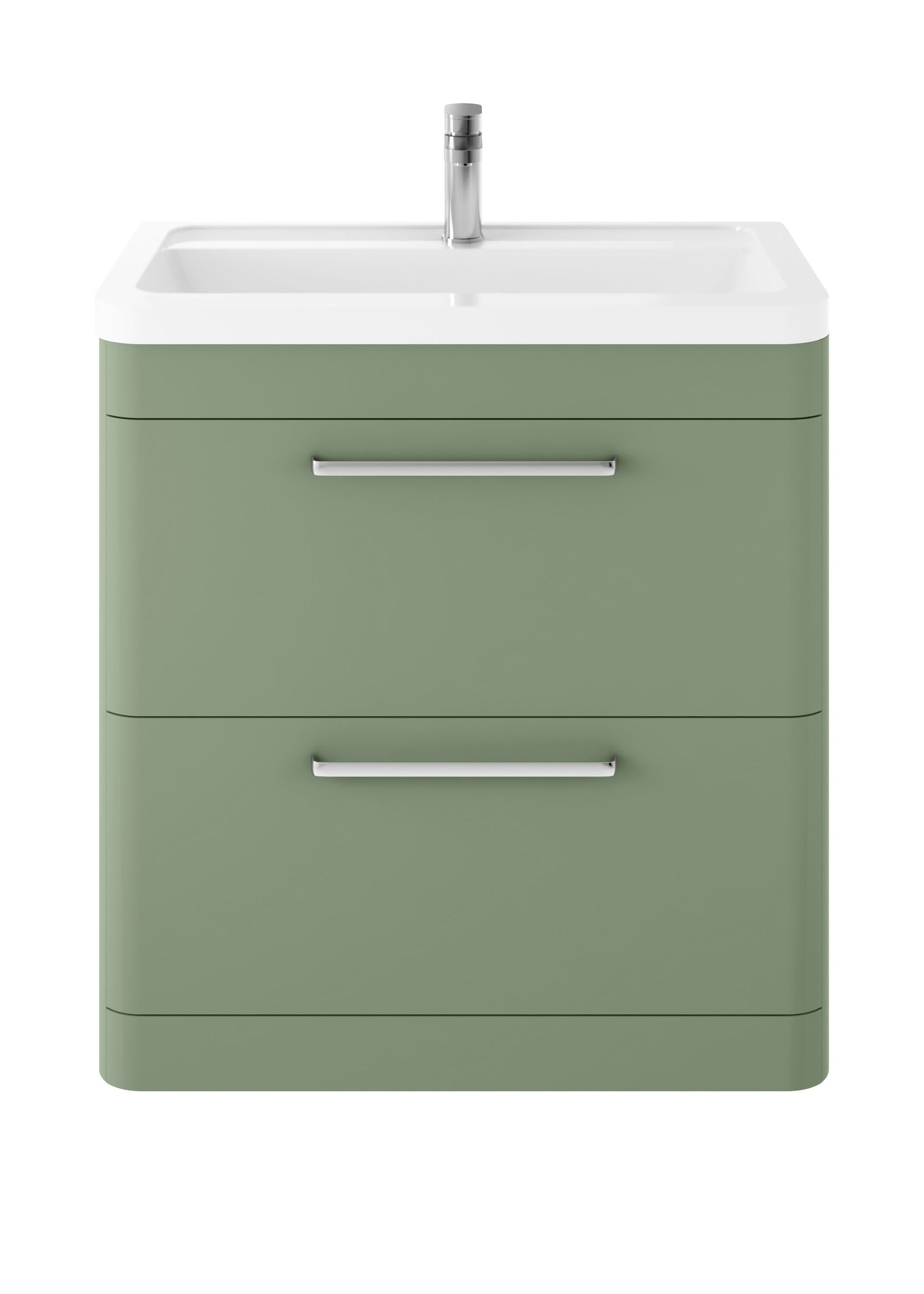 Hudson Reed Solar 800mm Floor Standing 2-Drawer Unit and Ceramic 1 Tap Hole Basin - Fern Green