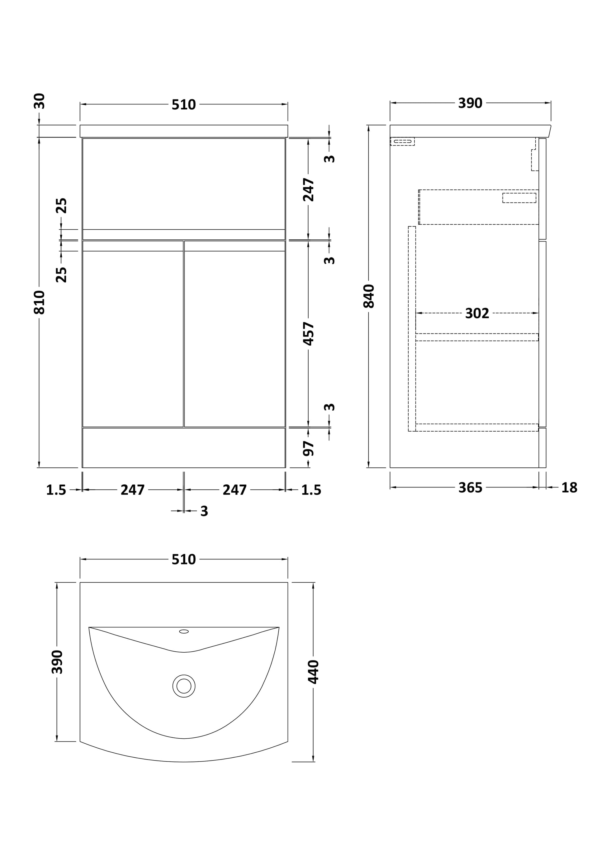Hudson Reed Urban Floor Standing 2 Door 1 Drawer Vanity Unit with Curved Basin 500mm - Satin Grey
