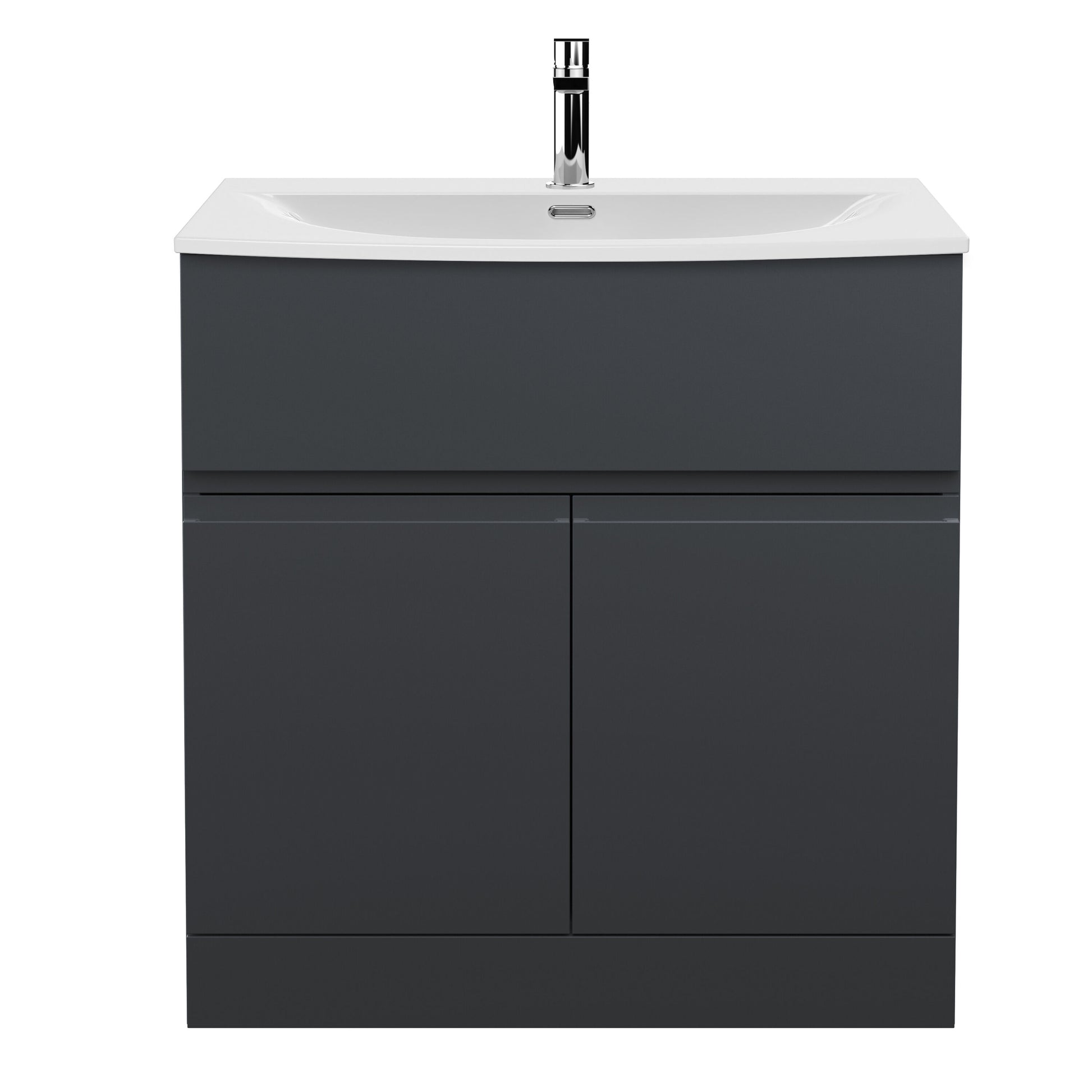 Hudson Reed Urban Floor Standing 2 Door Vanity & Curved Ceramic Basin, 800mm - Soft Black