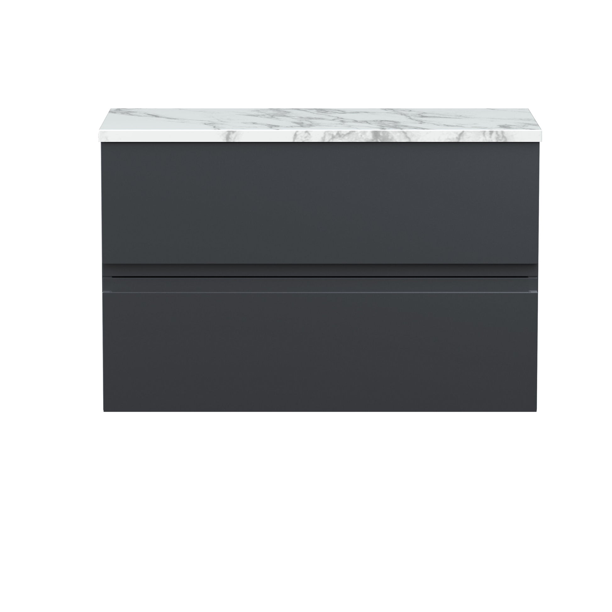 Hudson Reed Urban 800mm Wall Hung 2-Drawer Unit & Laminate Worktop - Soft Black