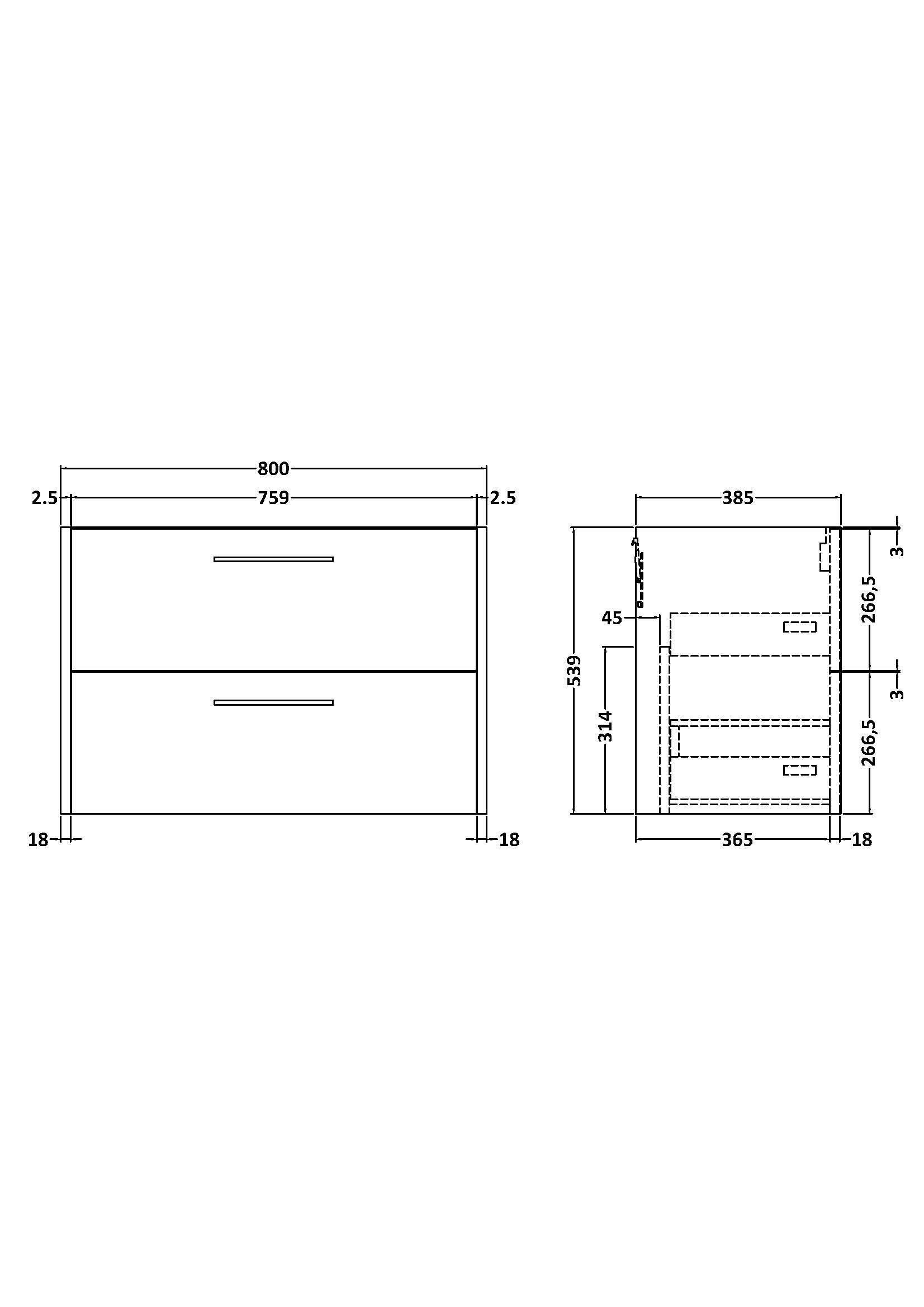 Juno 800mm Wall Hung 2-Drawer Unit