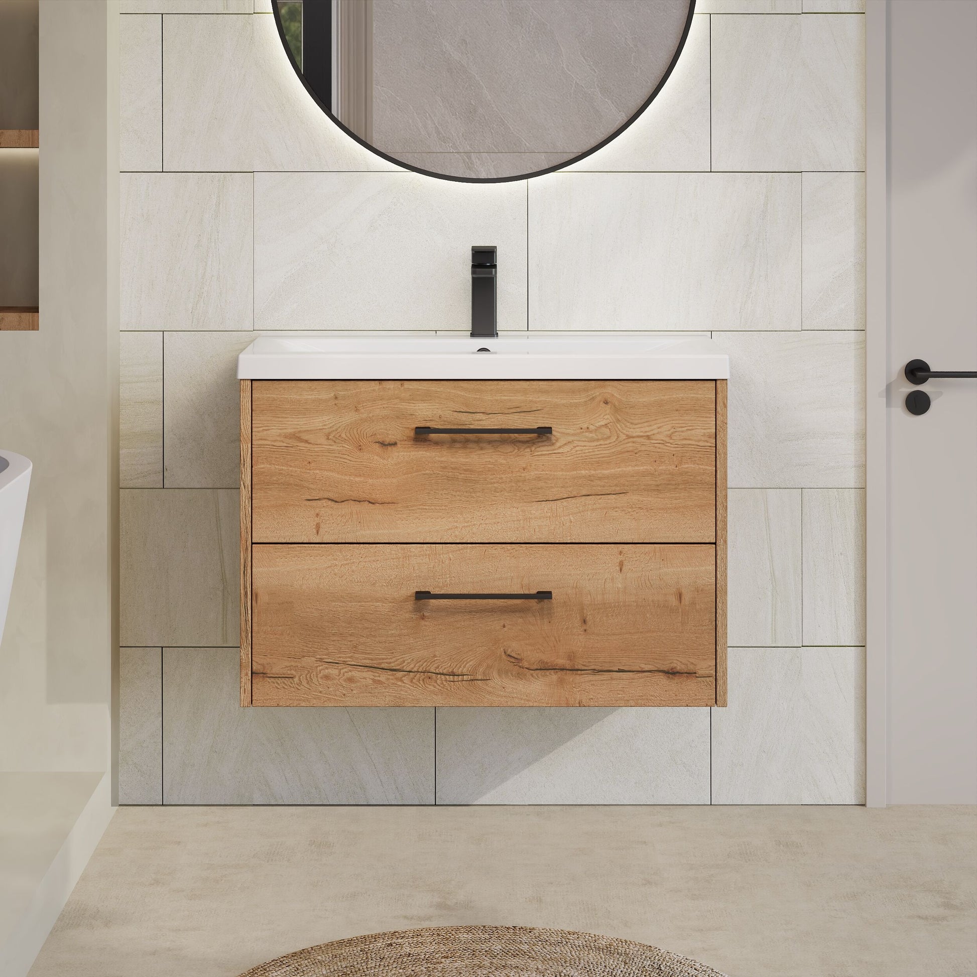 Hudson Reed Juno 800mm Wall Hung 2-Drawer Unit - Autumn Oak