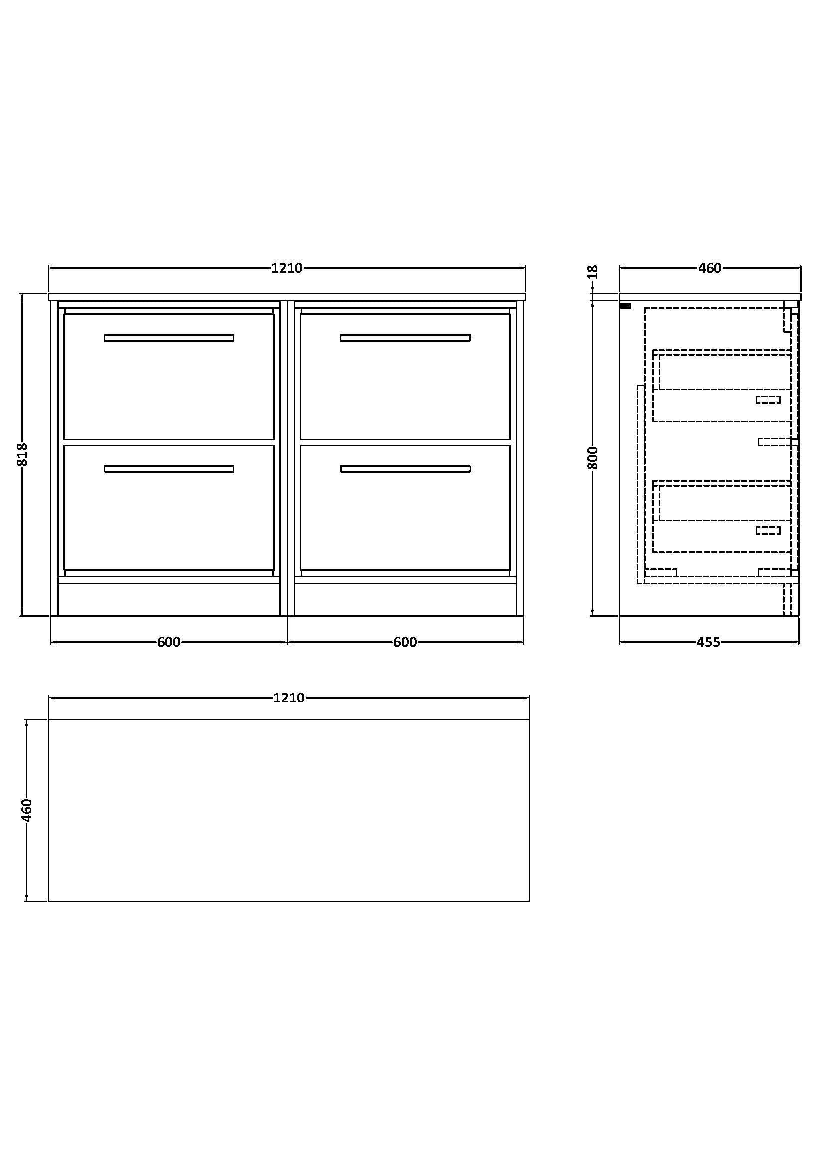 Lille 1200mm Floor Standing 4-Drawer Vanity with Marble Worktop
