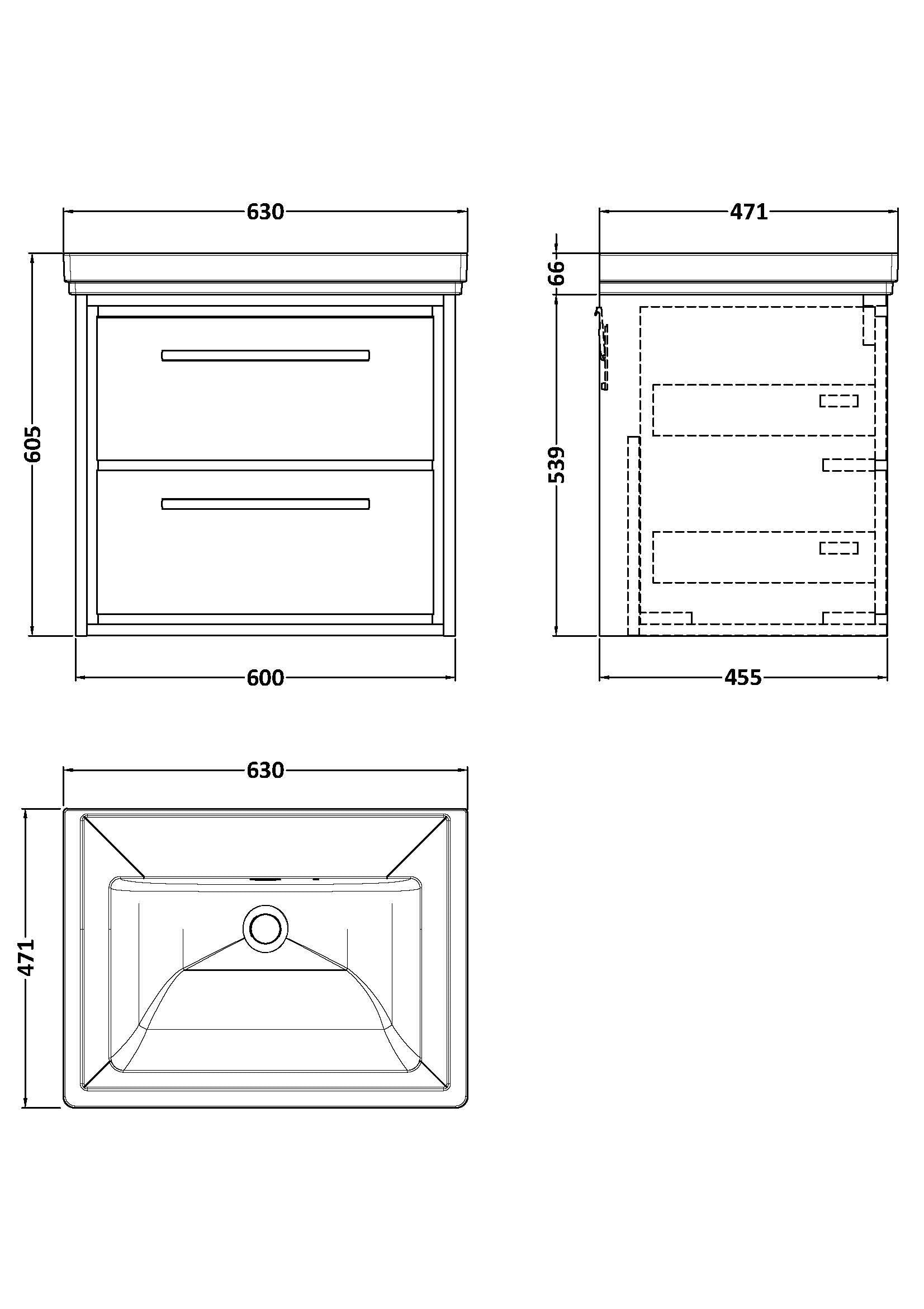 Lille 600mm Wall Hung 2-Drawer Vanity with Basin - 0 Tap Hole