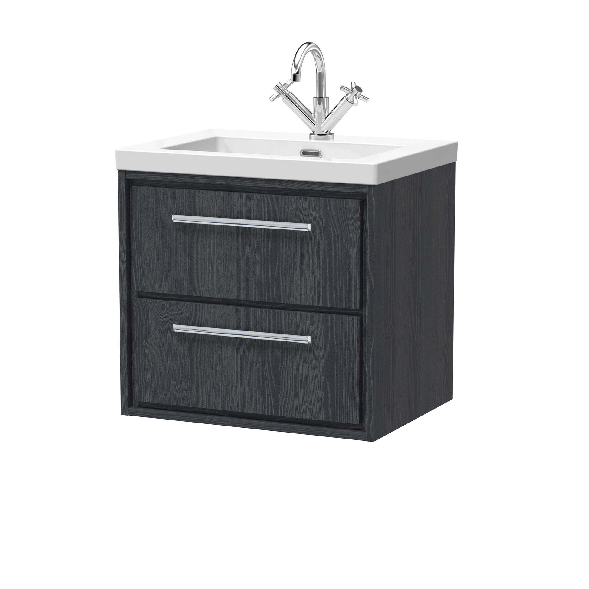 Hudson Reed Lille 600mm Wall Hung 2-Drawer Vanity with Basin - 1 Tap Hole - Graphite Grey Woodgrain