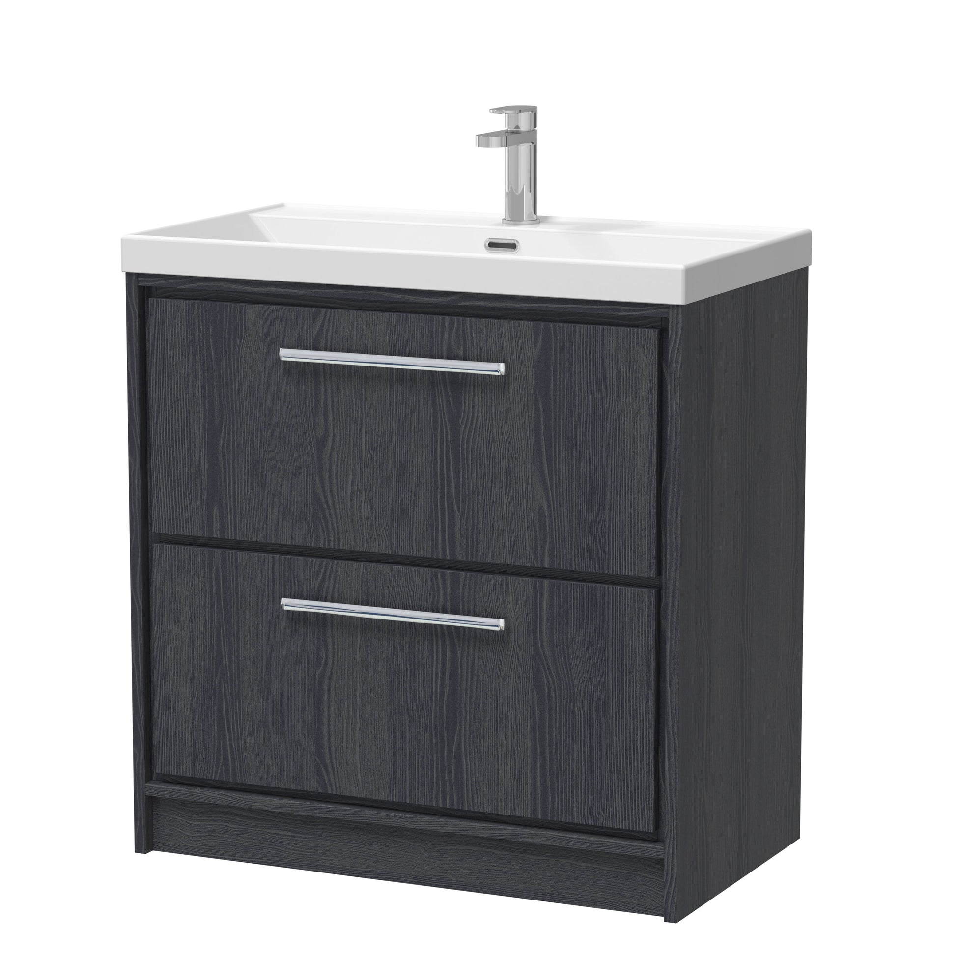 Hudson Reed Lille 800mm Floor Standing 2-Drawer Vanity with Basin - 1 Tap Hole - Graphite Grey Woodgrain