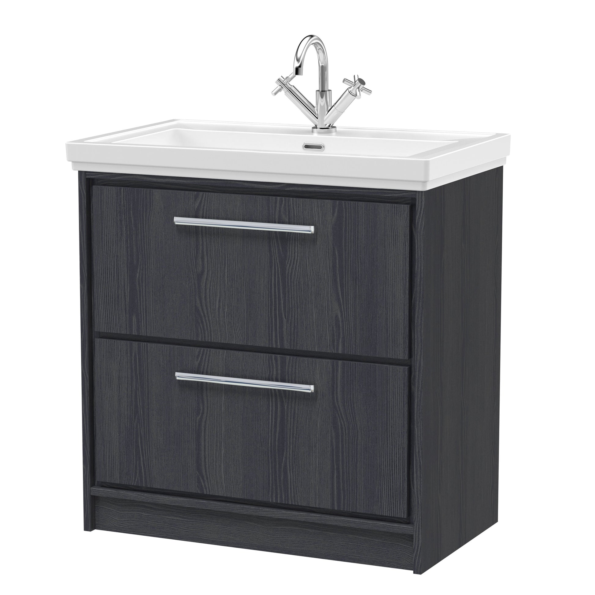 Hudson Reed Lille 800mm Floor Standing 2-Drawer Vanity with Basin - 1 Tap Hole - Graphite Grey Woodgrain