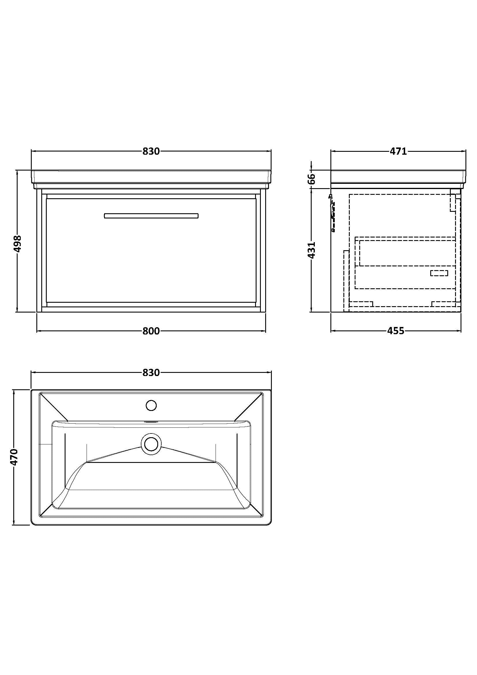 Lille 800mm Wall Hung Single Drawer Vanity with Basin - 1 Tap Hole