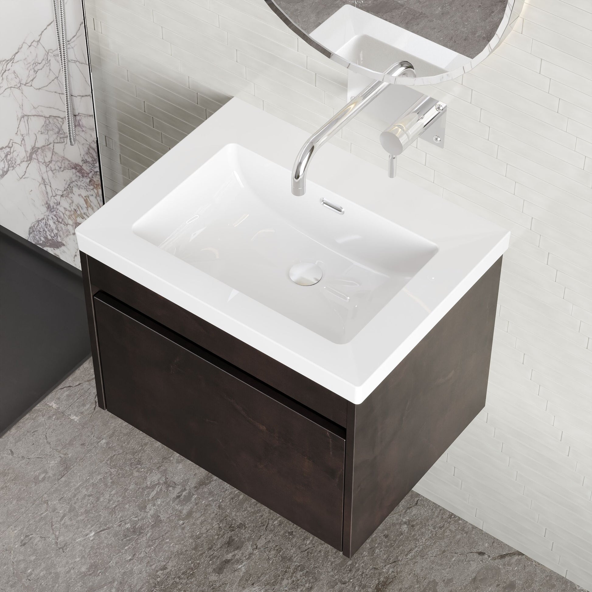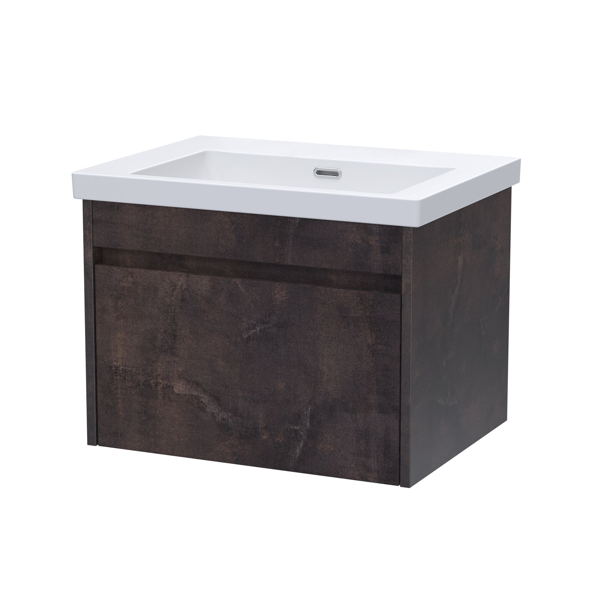BC Designs Loftwood 600mm 1 Drawer Metallic Slate Wall Hung Vanity Unit With Fireclay Basin