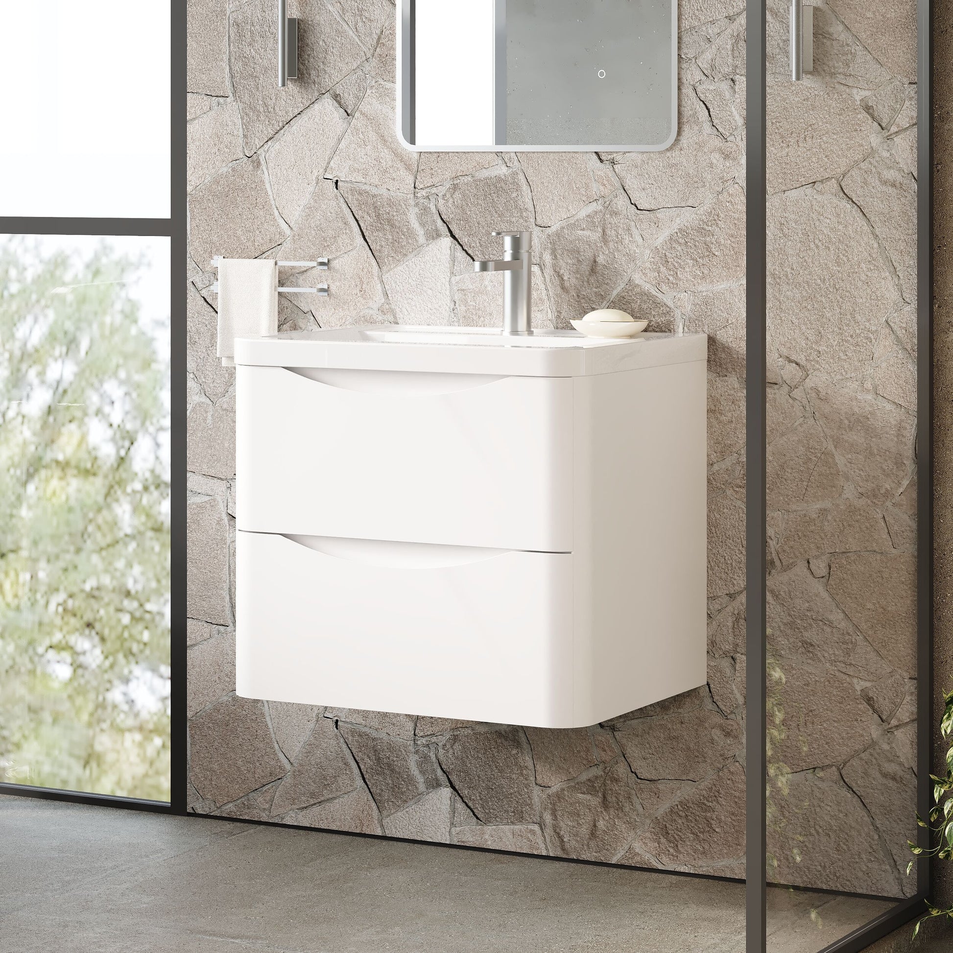 Lunar Components Wall Hung 2 Drawer Unit, 600mm - Satin White