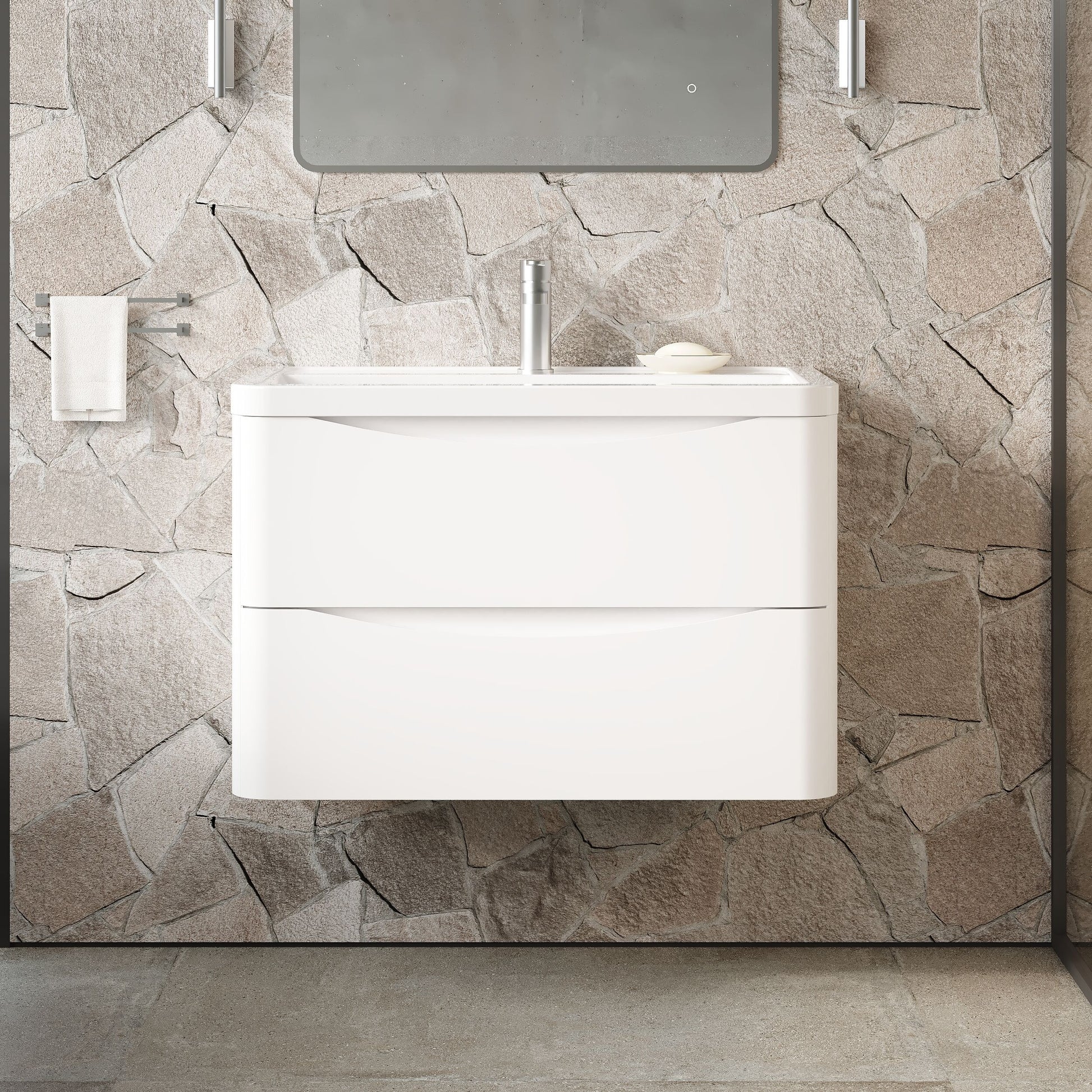 Lunar Components Wall Hung 2 Drawer Unit, 800mm - Satin White