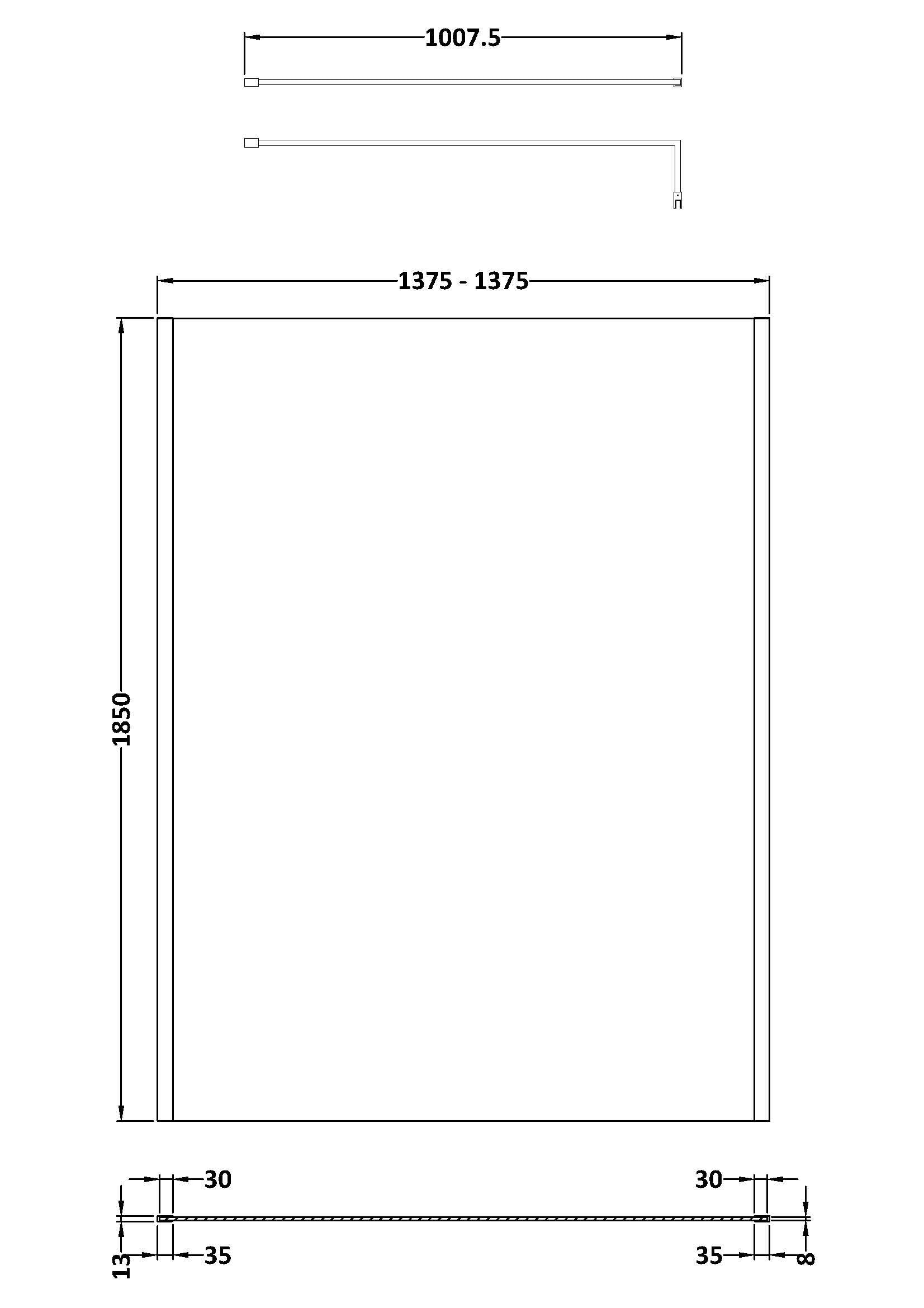 nuie 1400mm Outer Framed Wetroom Screen with Support Bar - 8mm Glass - Brushed Brass