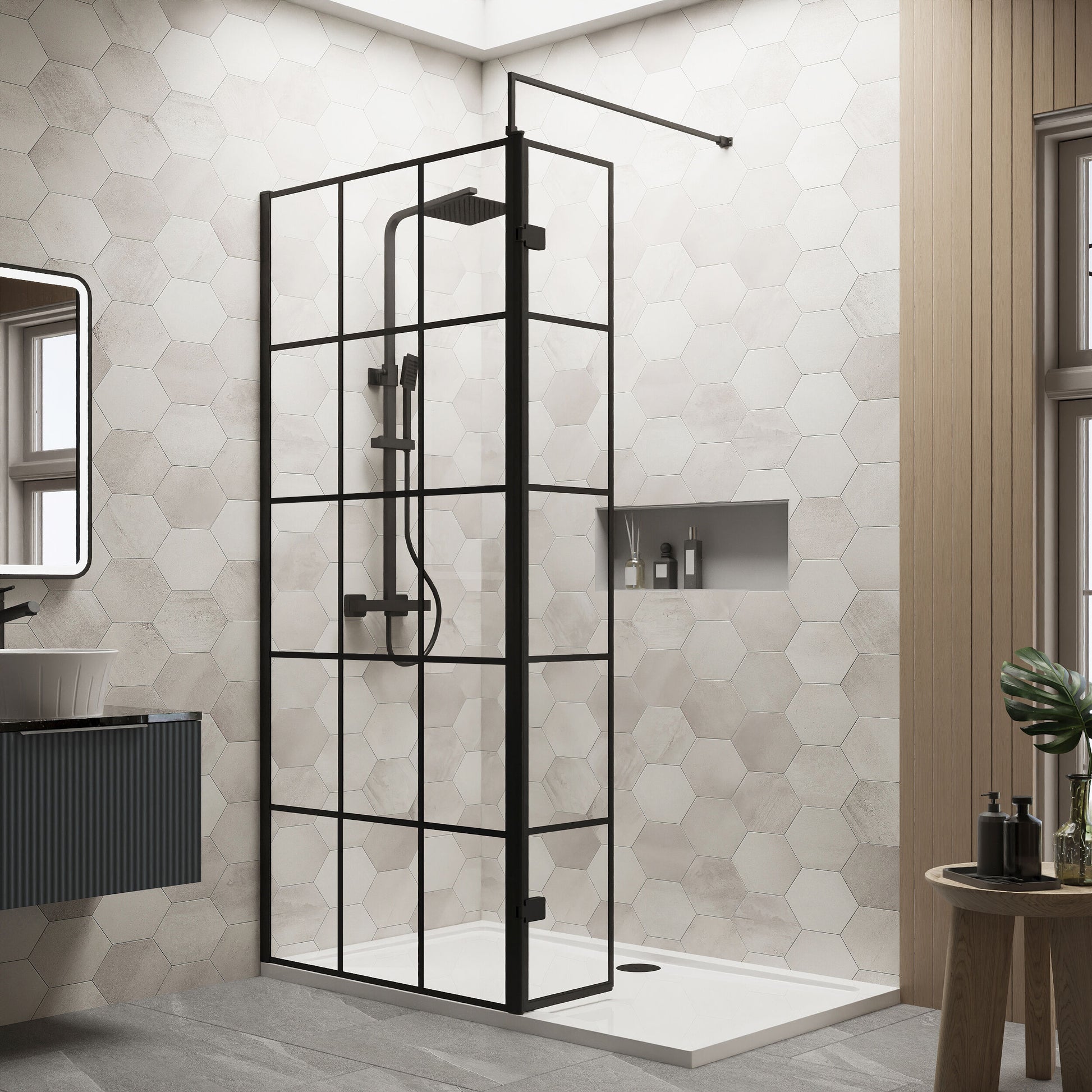 Nuie 900mm Framed Walk-In Wetroom Return Screen With Tray