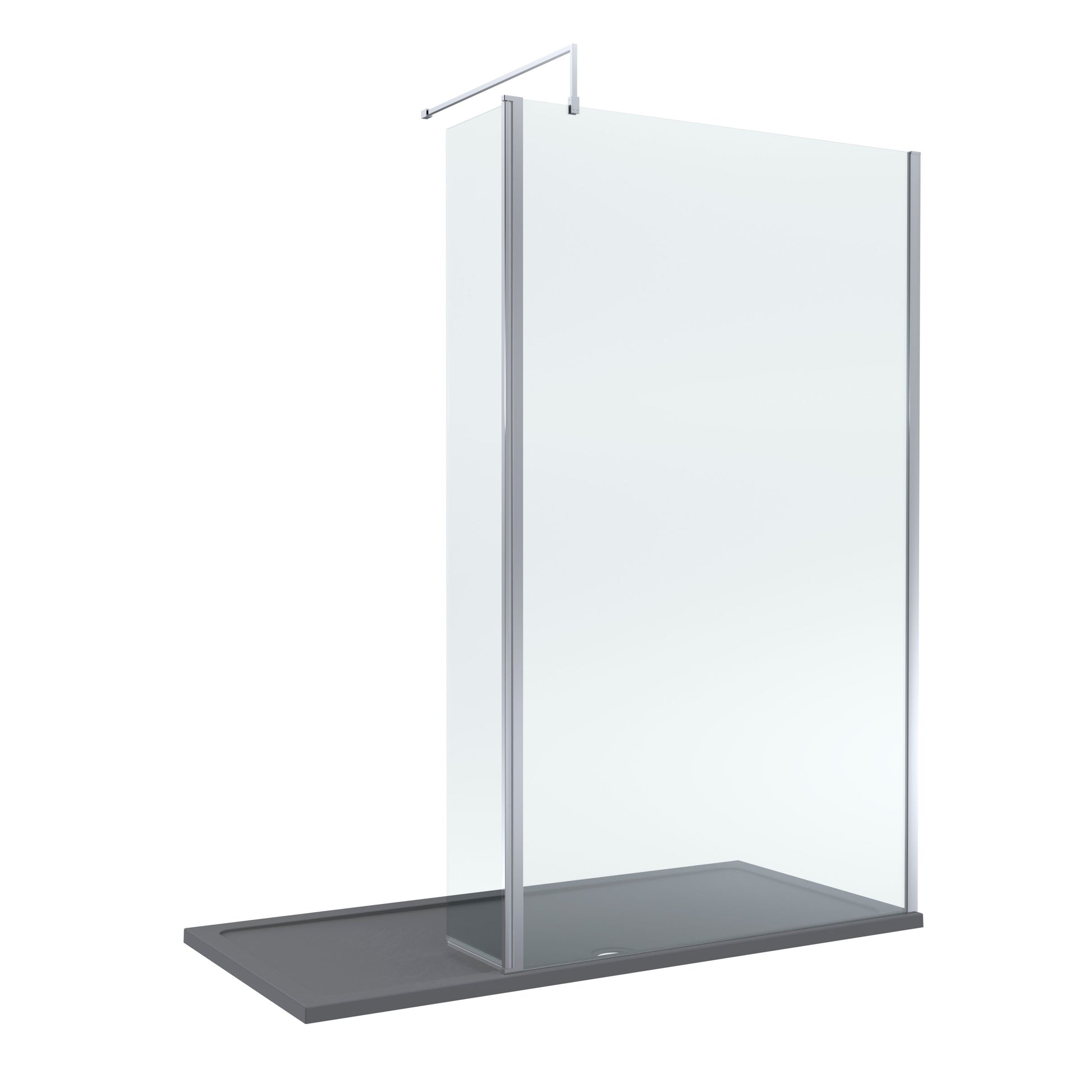 Nuie 1700mm x 800mm Chrome Walk-In Wetroom Screen with Return & Slate Grey Tray