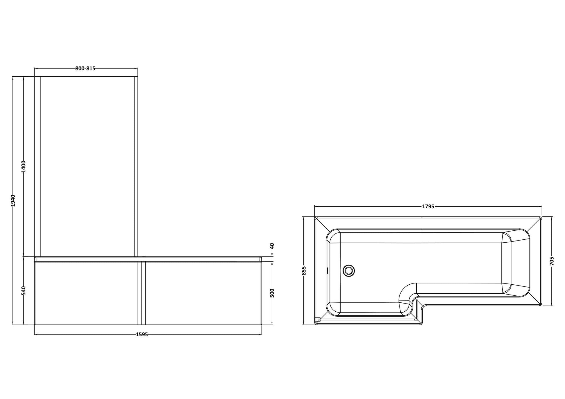 Nuie 1800mm Left-Hand Square Shower Bath And Panel Set