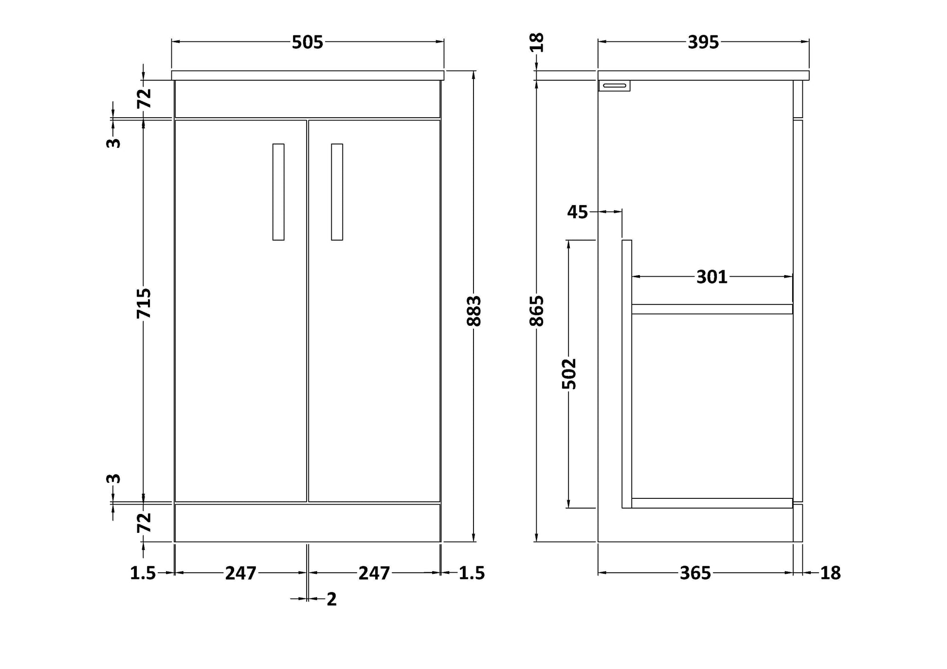 Nuie Athena 500mm Floor Standing 2 Door Vanity Unit With 1 Tap Hole Basin