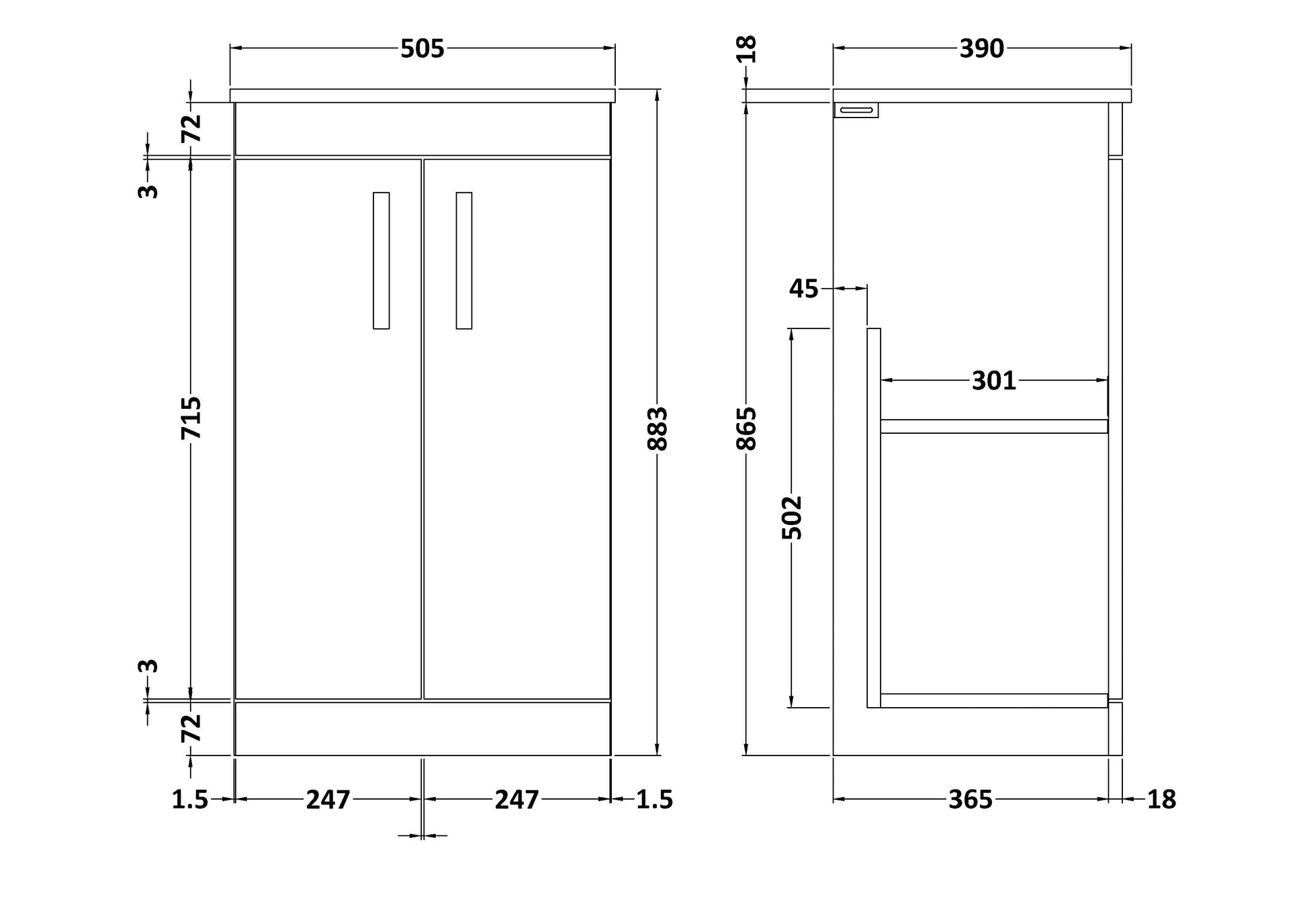 Nuie 505mm Gloss Grey Floor Standing 2 Door Vanity Unit With Worktop