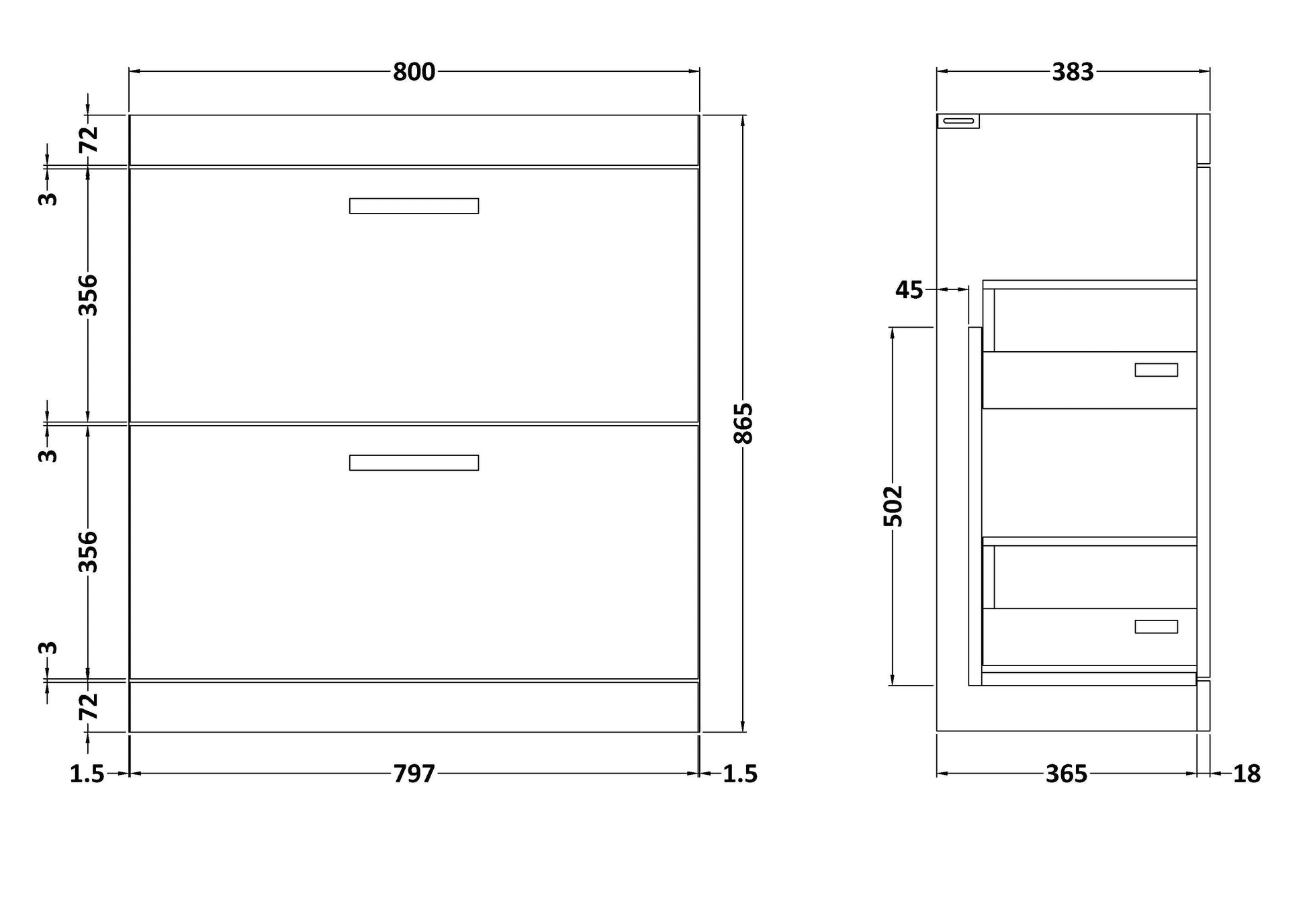 Increase quantity for Athena Floor Standing 2 Drawer Vanity Unit 800mm