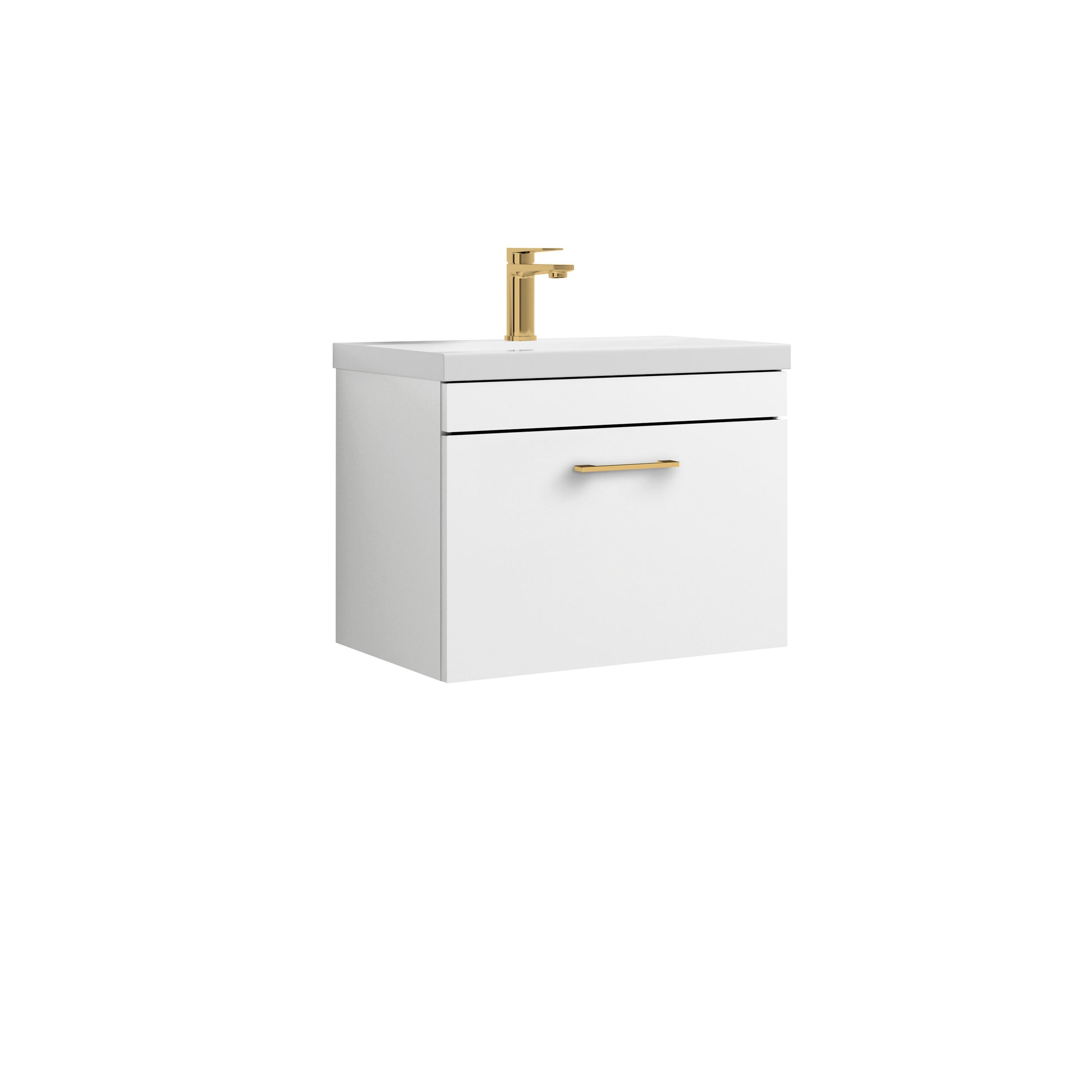 nuie Athena Wall Hung 1 Drawer Vanity with Ceramic Mid-Edge Basin and Handle 600mm - Gloss White/Brushed Brass