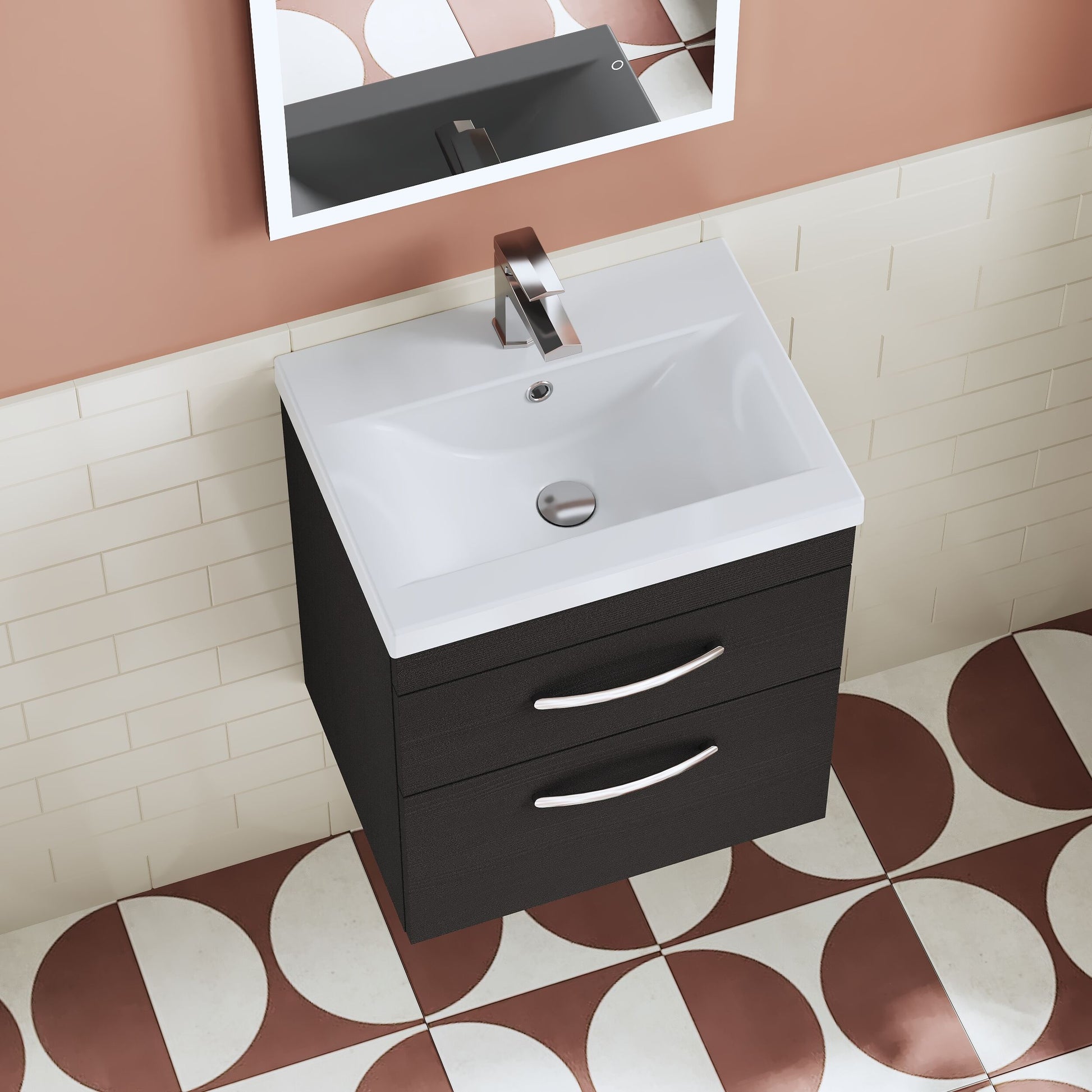 nuie Athena Wall Hung 2 Drawer Vanity Unit 500mm - Hacienda Black