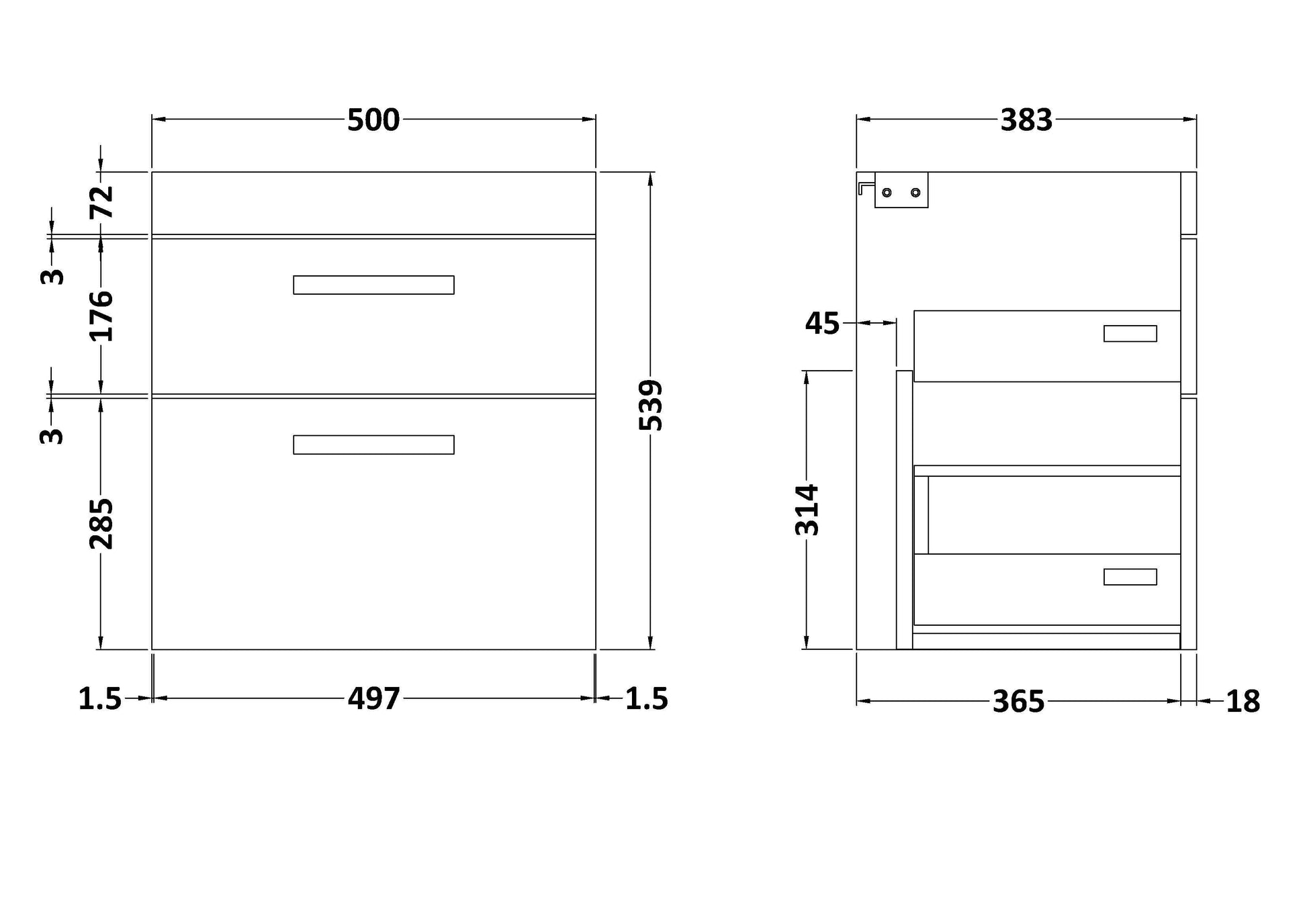 Athena Wall Hung 2 Drawer Vanity Unit 500mm
