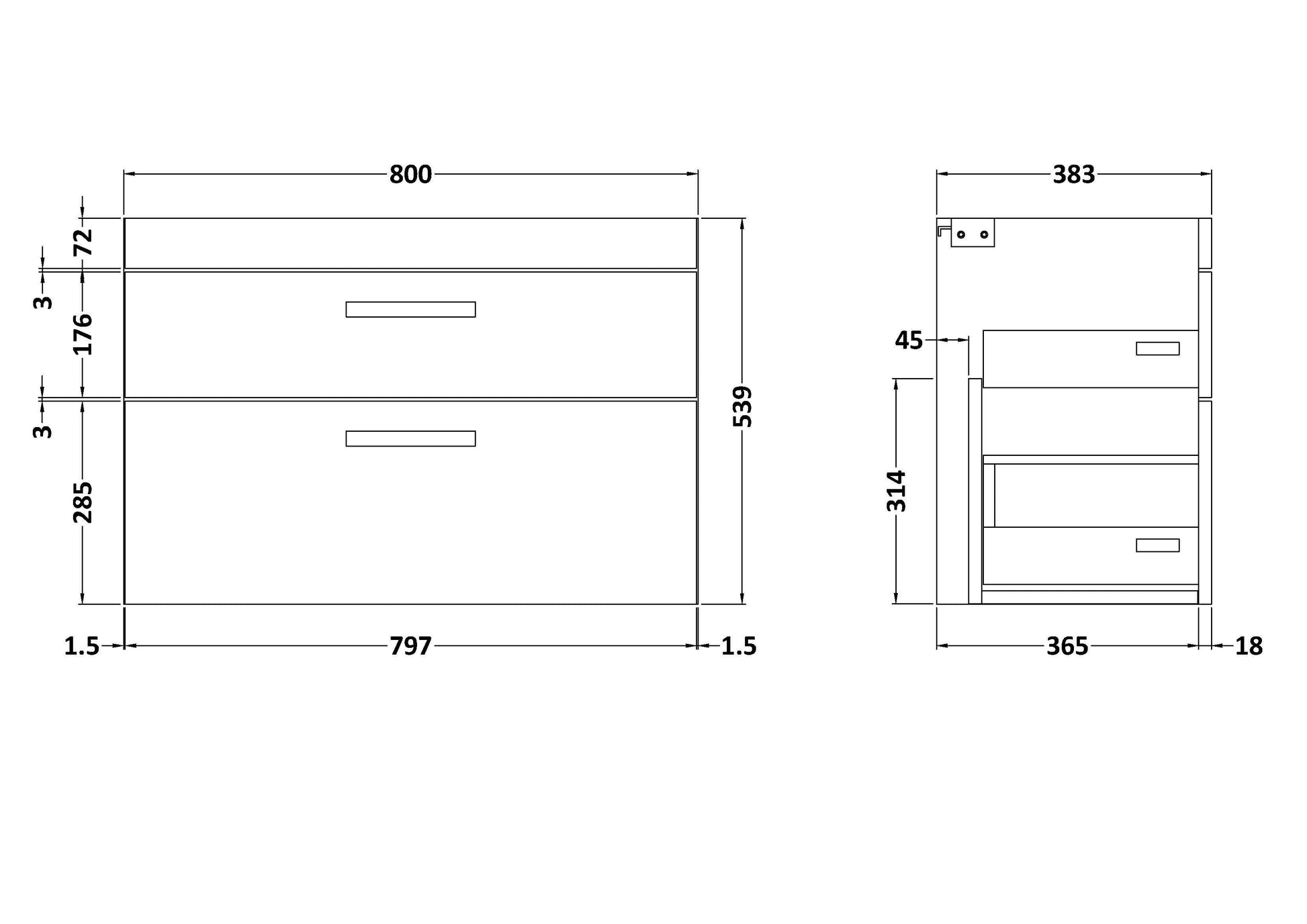 Athena Wall Hung 2 Drawer Vanity Unit 800mm