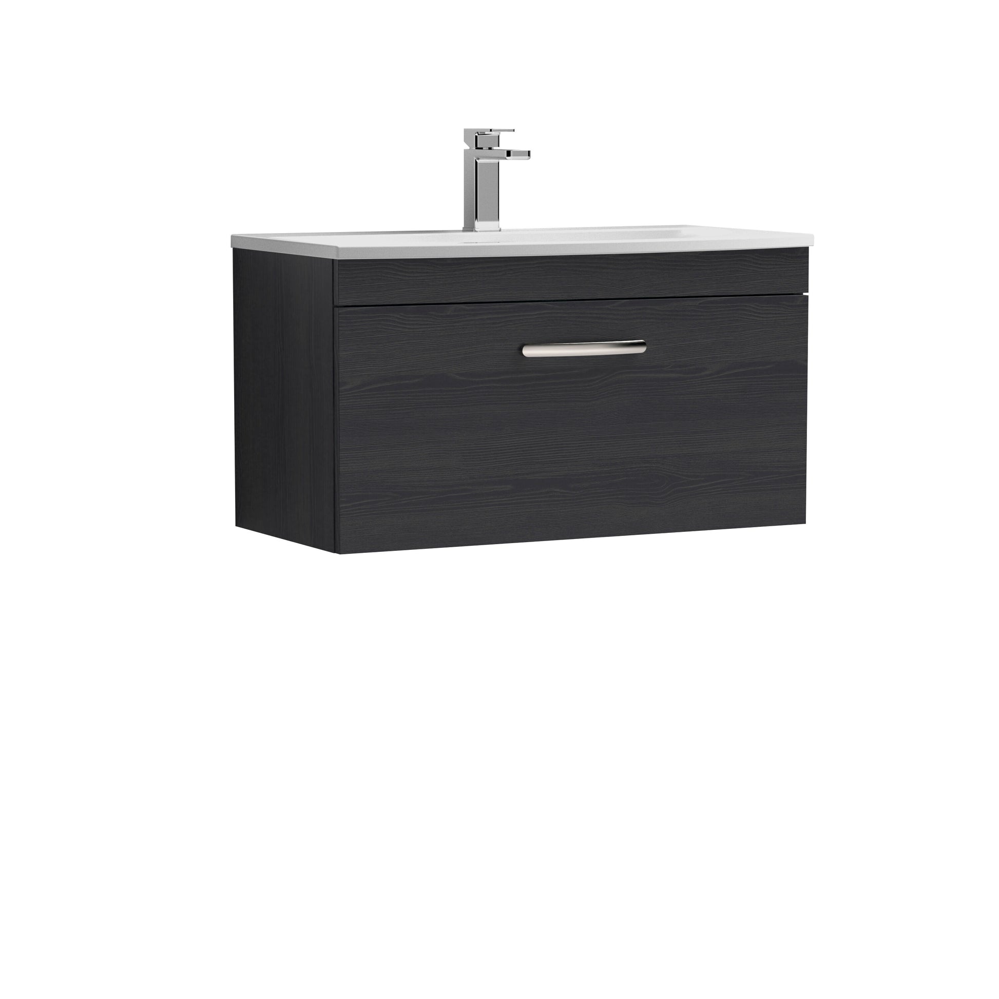 Nuie Athena 800mm Charcoal Black Wall Hung Single Drawer Vanity Unit With Curved 1 Tap Hole Basin