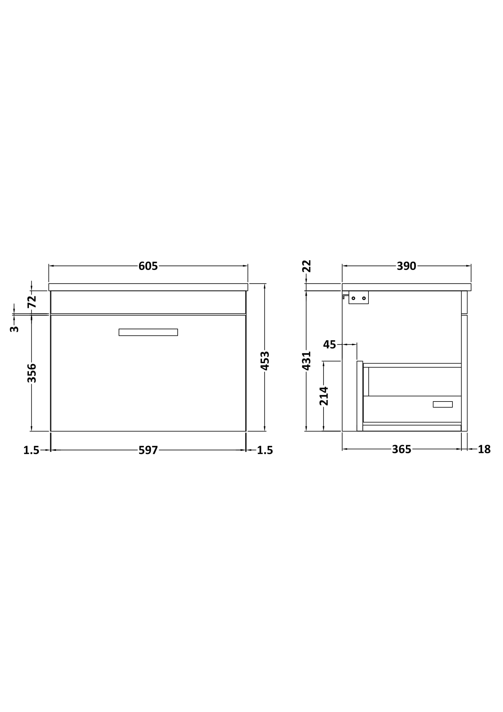Nuie Athena 600mm Gloss Grey Wall Hung Single Drawer Vanity Unit Including Worktop