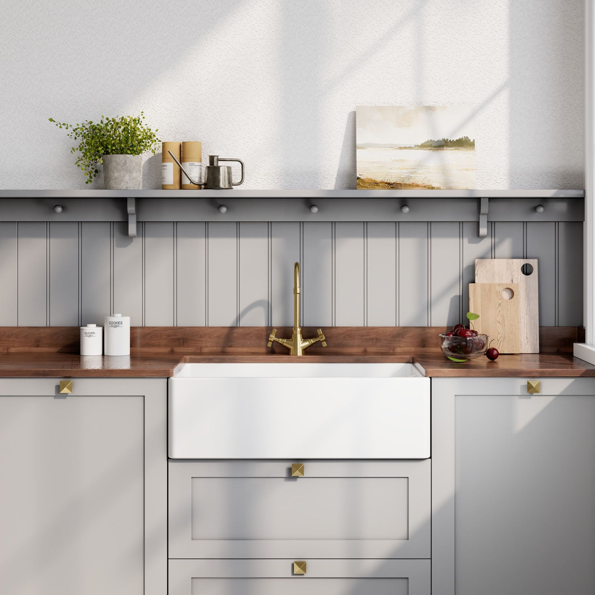 Nuie Single Bowl 795 x 460 x 245mm Fireclay White Belfast Sink