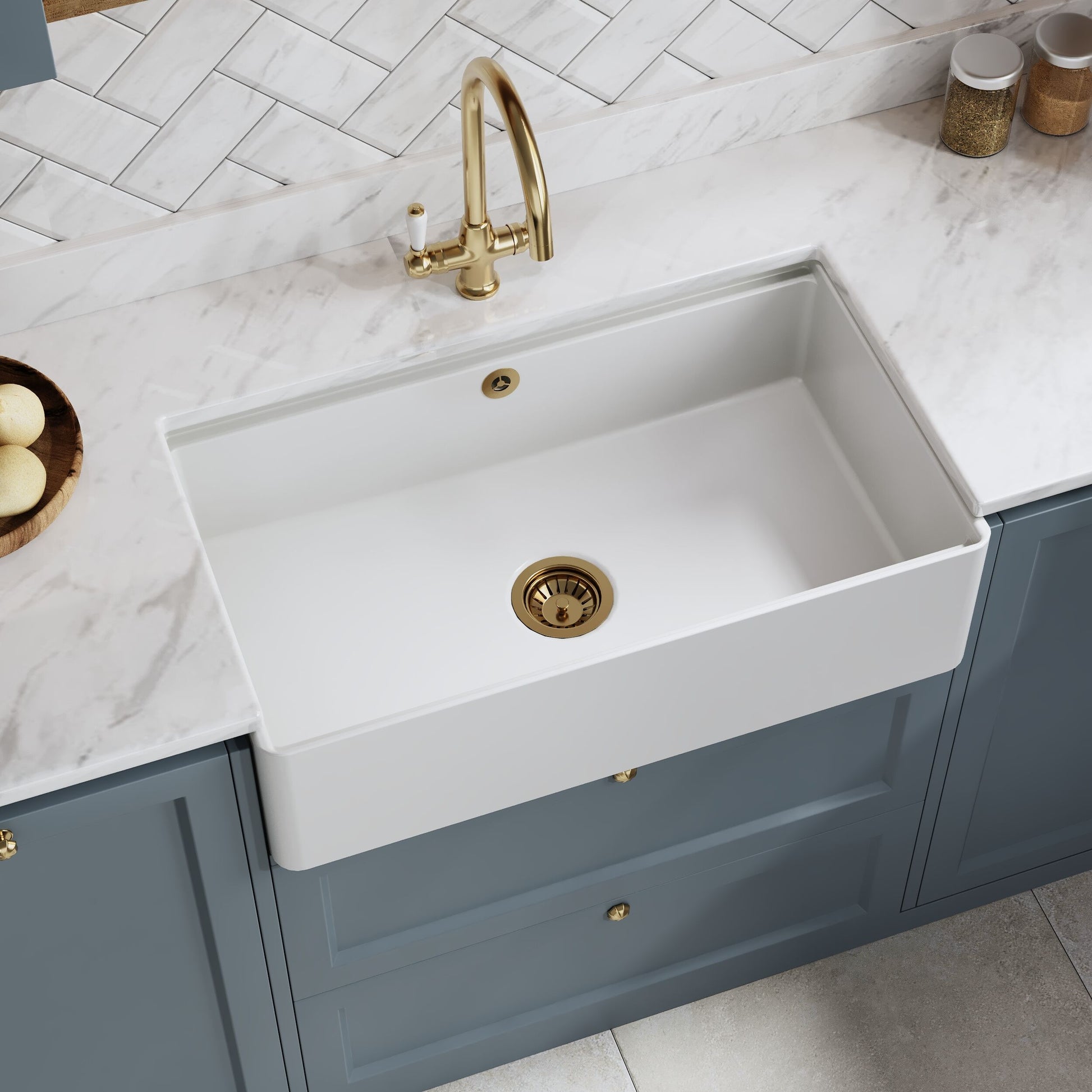 Nuie 1 Tap Hole Single Bowl 795 x 460 x 220mm Fireclay White Butler Sink