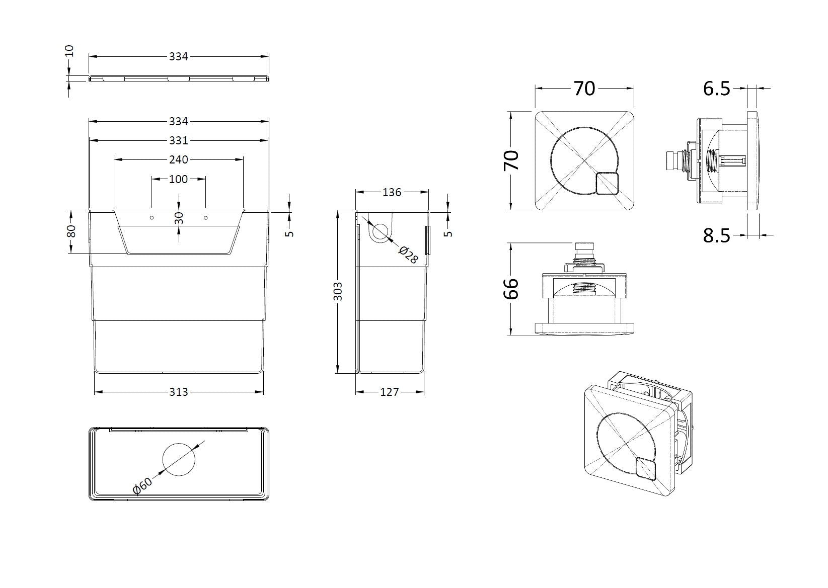 Nuie Brushed Pewter Concealed Cistern With Square Dual Flush Plate