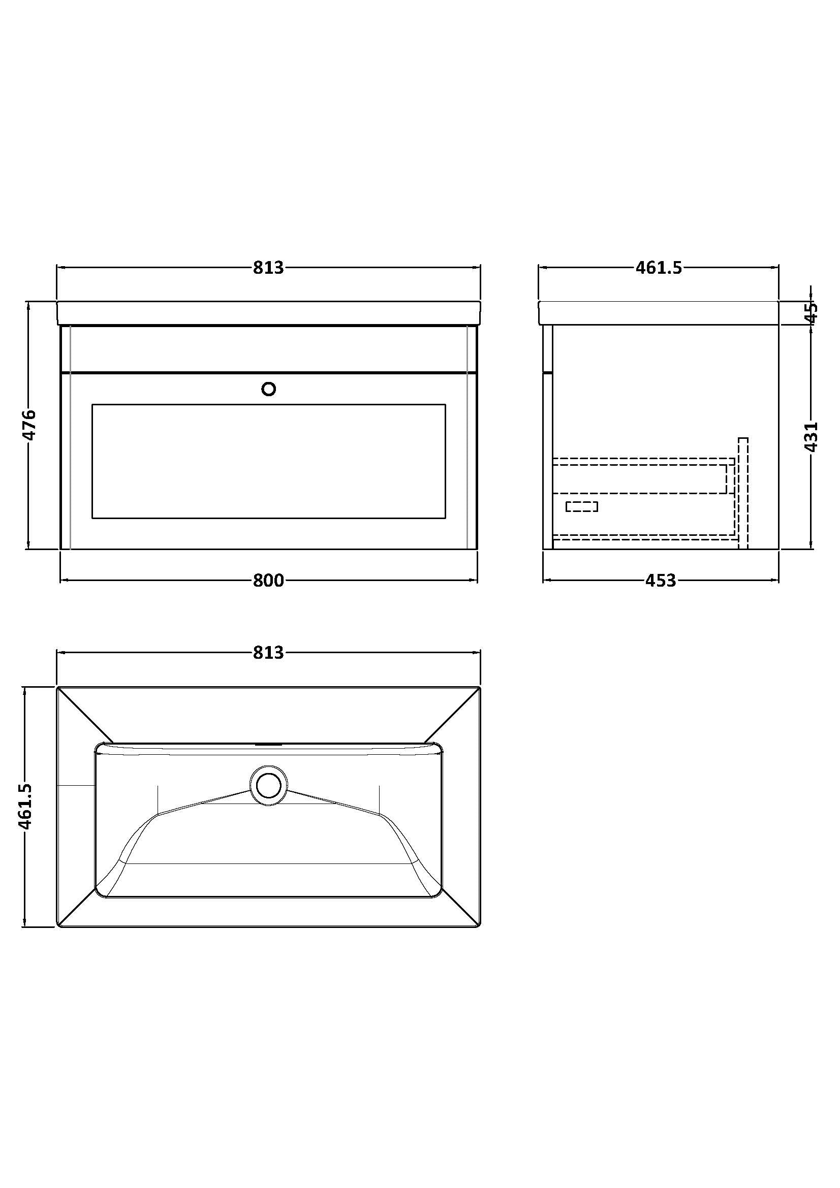 Nuie Classique 800mm Wall Hung Vanity Unit with Basin With Soft Close Drawer