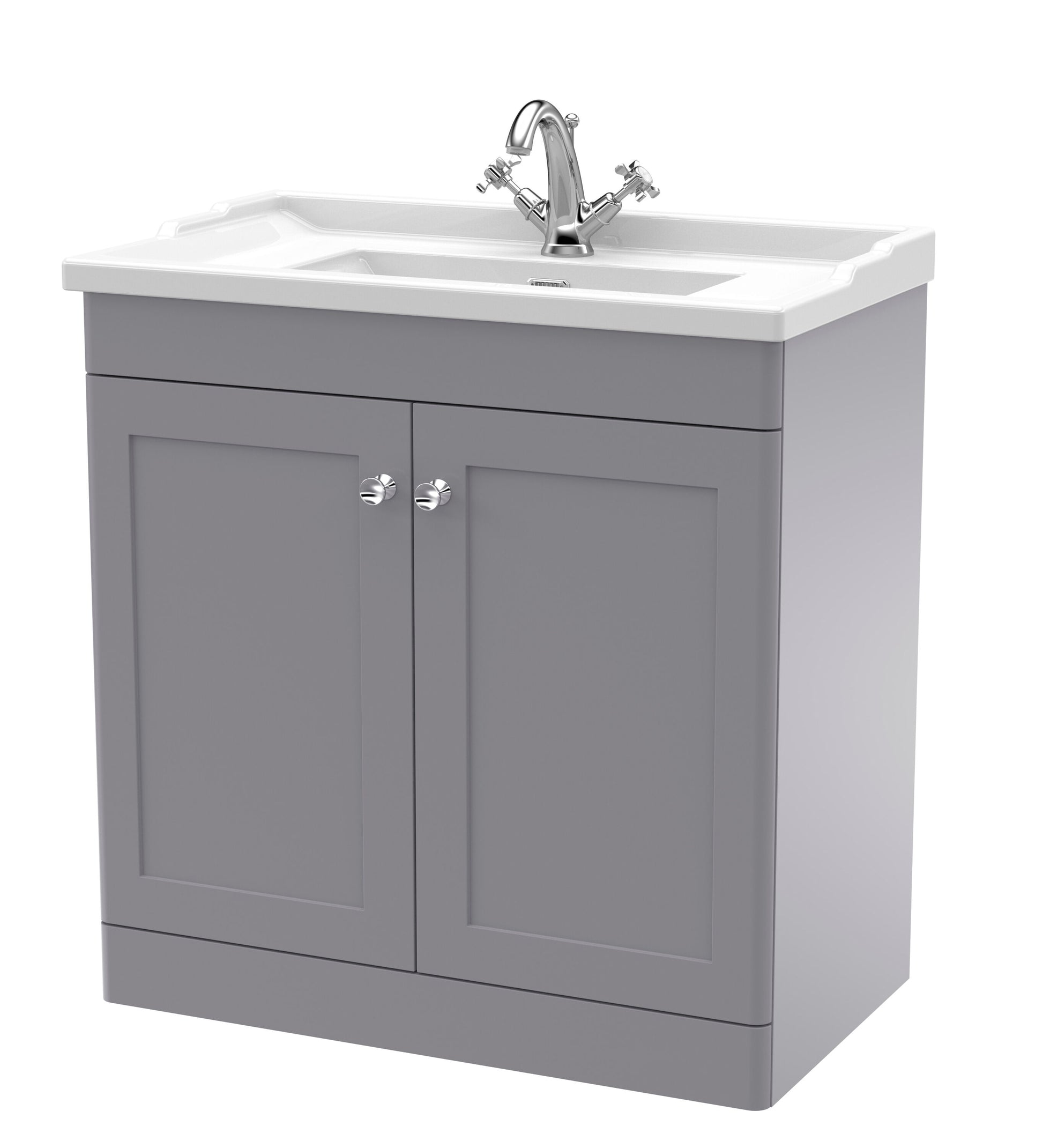 Nuie Classique 820mm Satin Grey Floor Standing 2 Door Vanity Unit with 1 Tap Hole Basin
