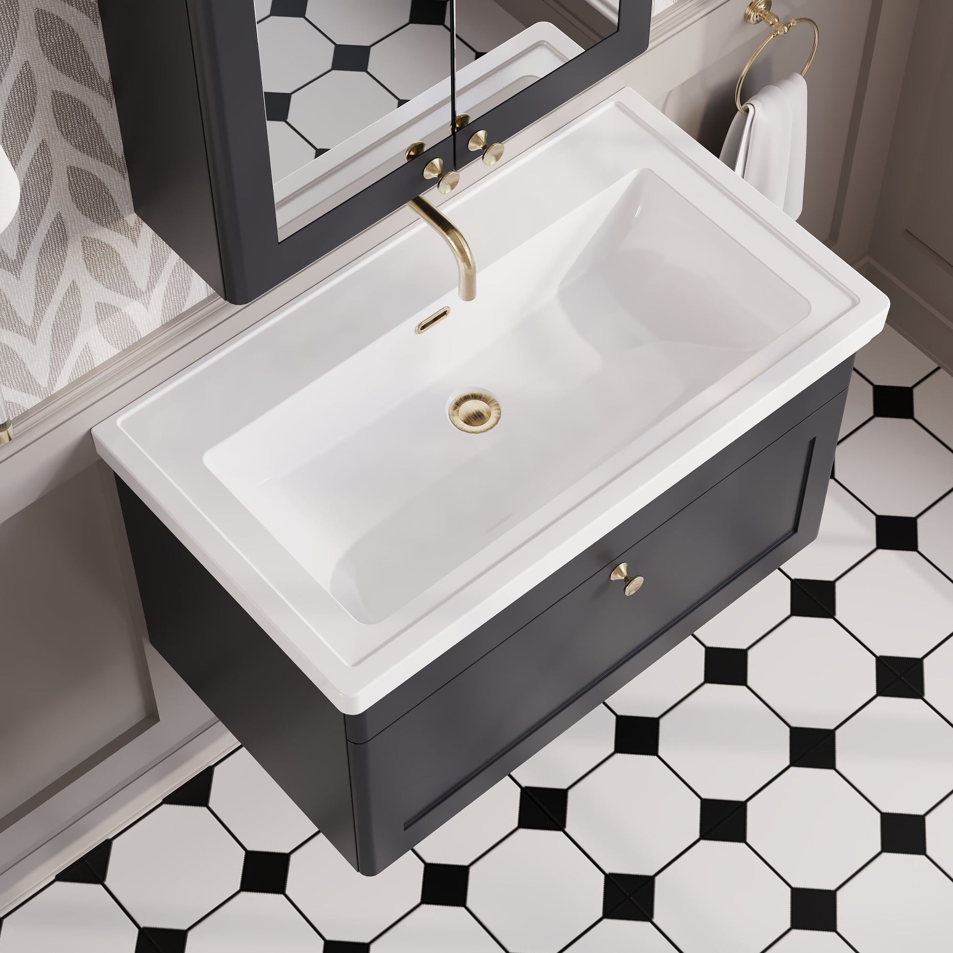 Nuie Classique 800mm Wall Hung 1 Drawer Vanity Unit with Basin