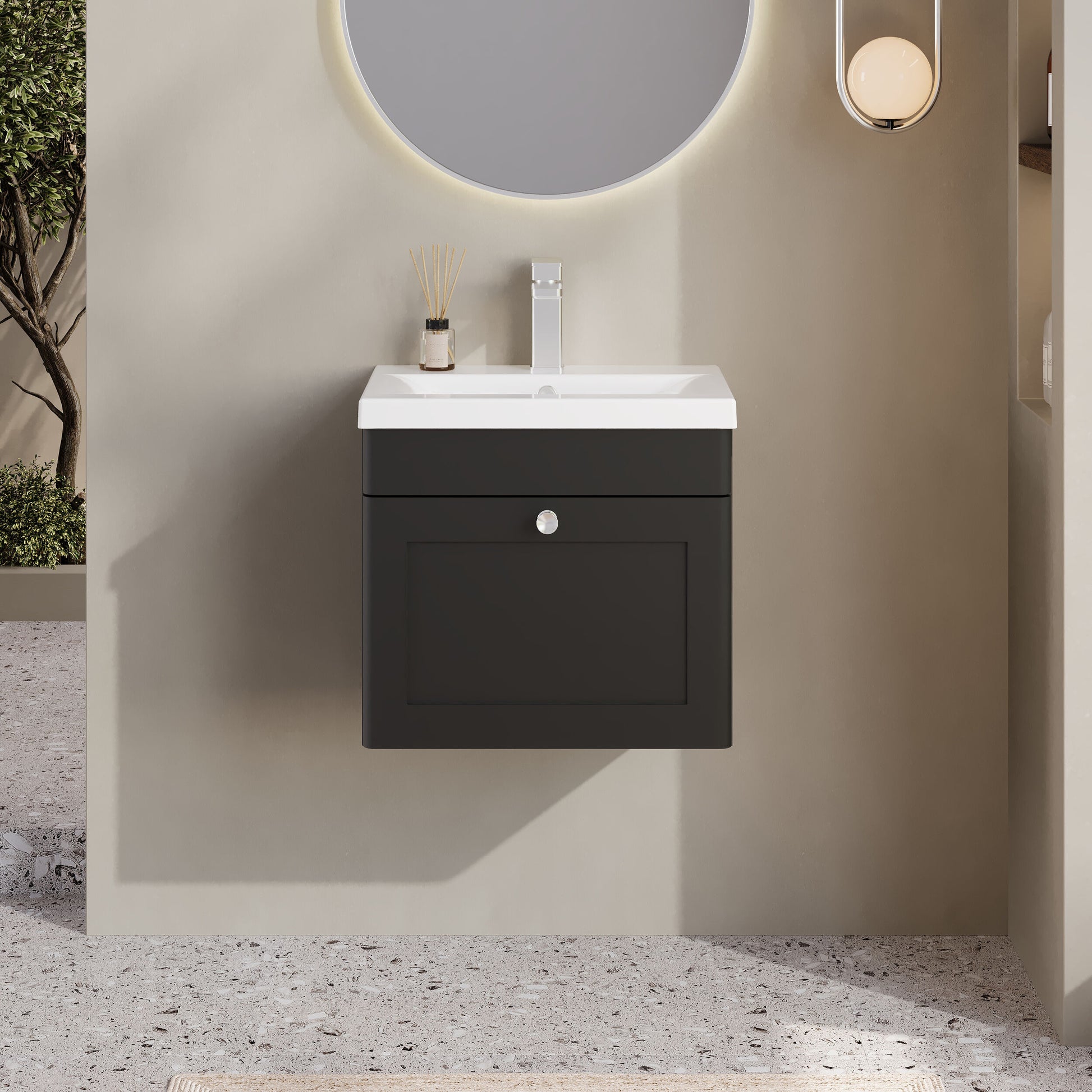 nuie Classique Wall Hung 1 Drawer Unit & Mid-Edge Ceramic Basin, 500mm - Soft Black