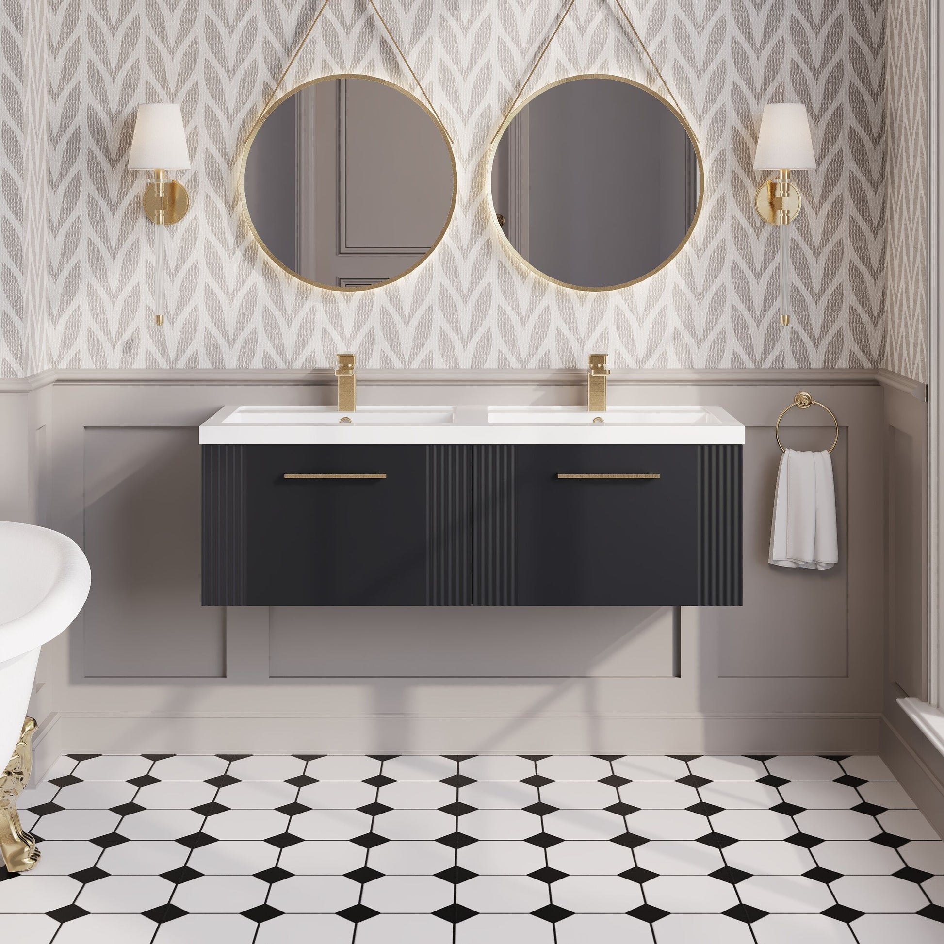 nuie Deco 1200mm Wall Hung 2-Drawer Vanity & Double Basin - Soft Black