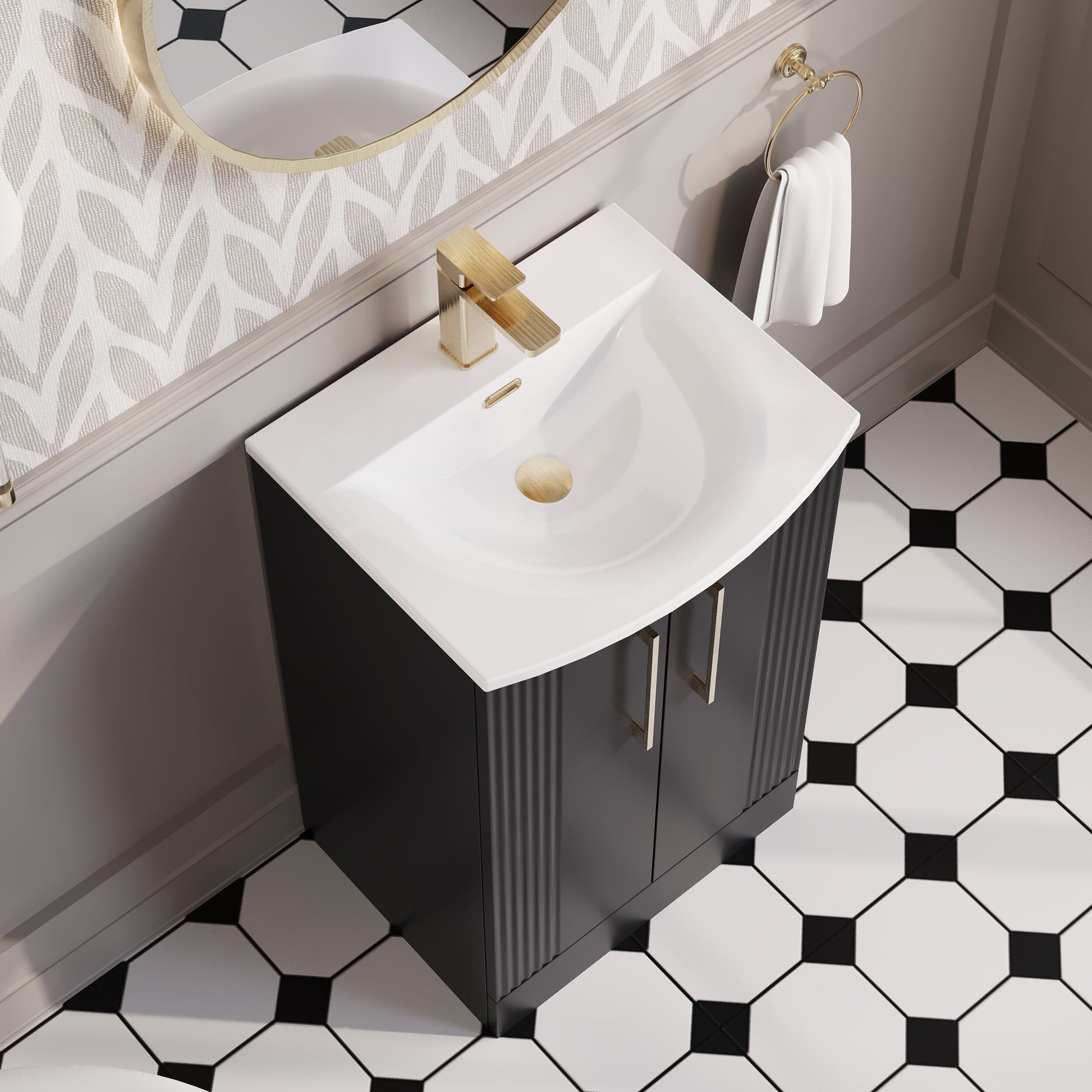 nuie Deco 500mm Floor Standing 2-Door Vanity & Curved Basin - Soft Black