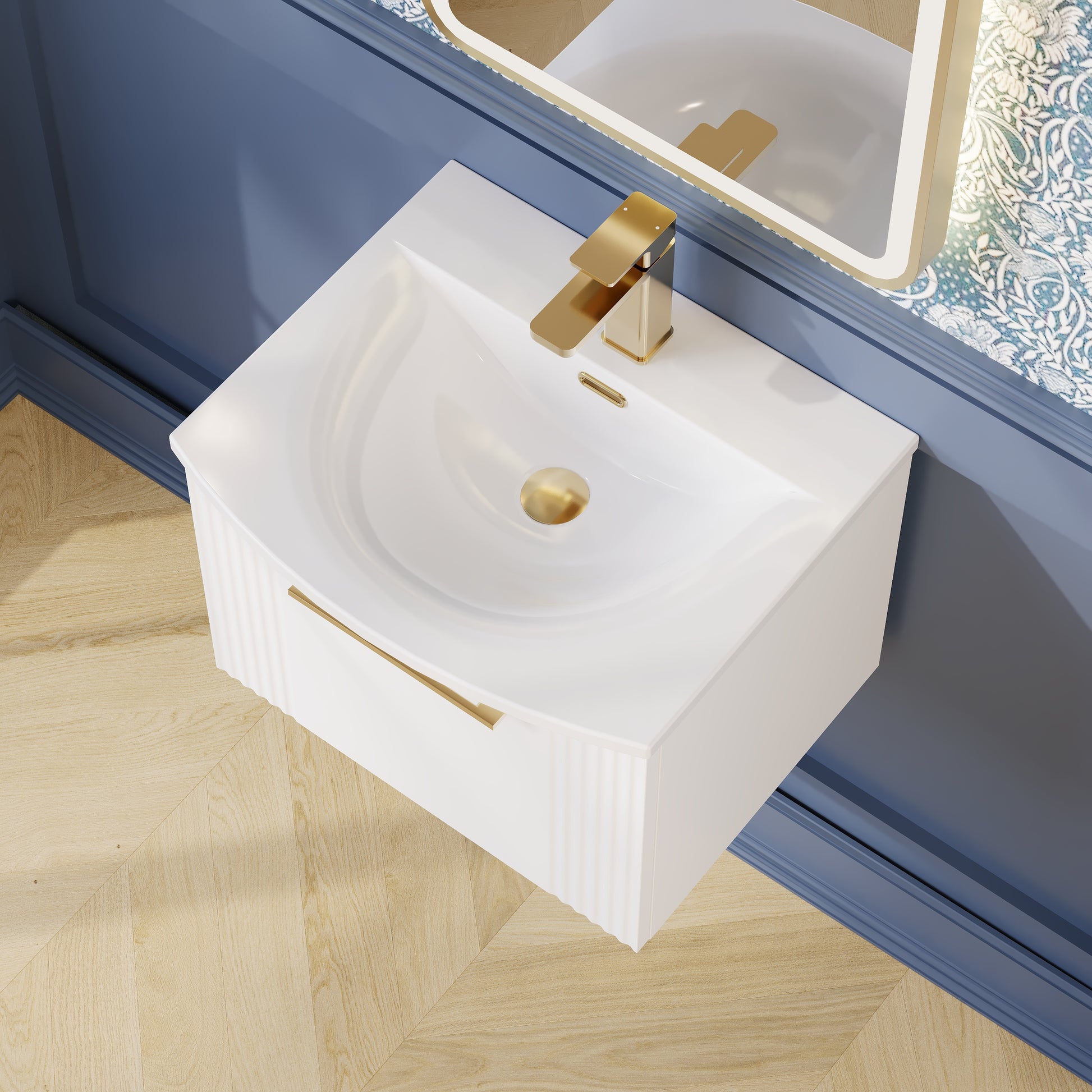 nuie Deco 500mm Wall Hung Single Drawer Vanity & Curved Basin - Satin White