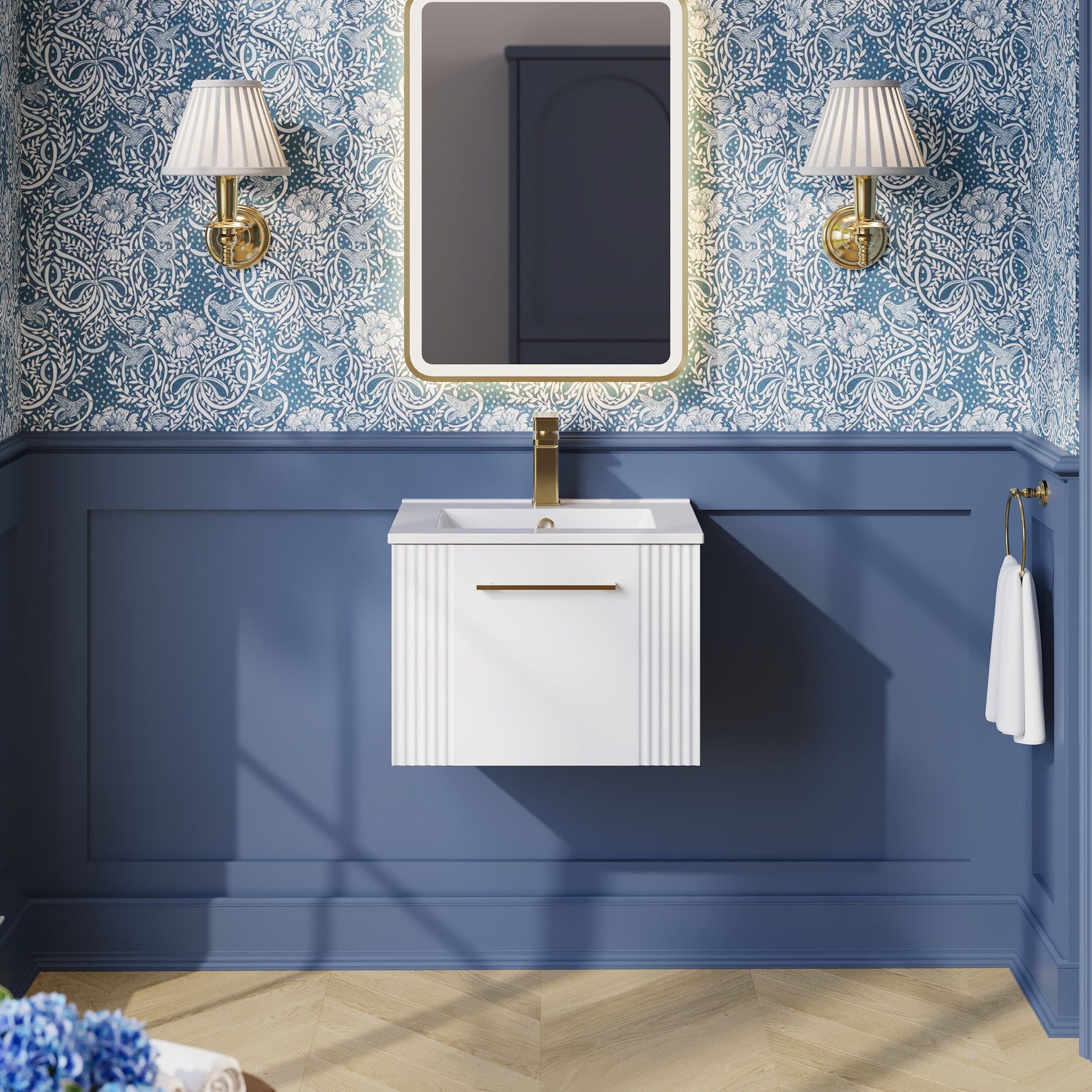 nuie Deco 500mm Wall Hung Single Drawer Vanity & Minimalist Basin - Satin White