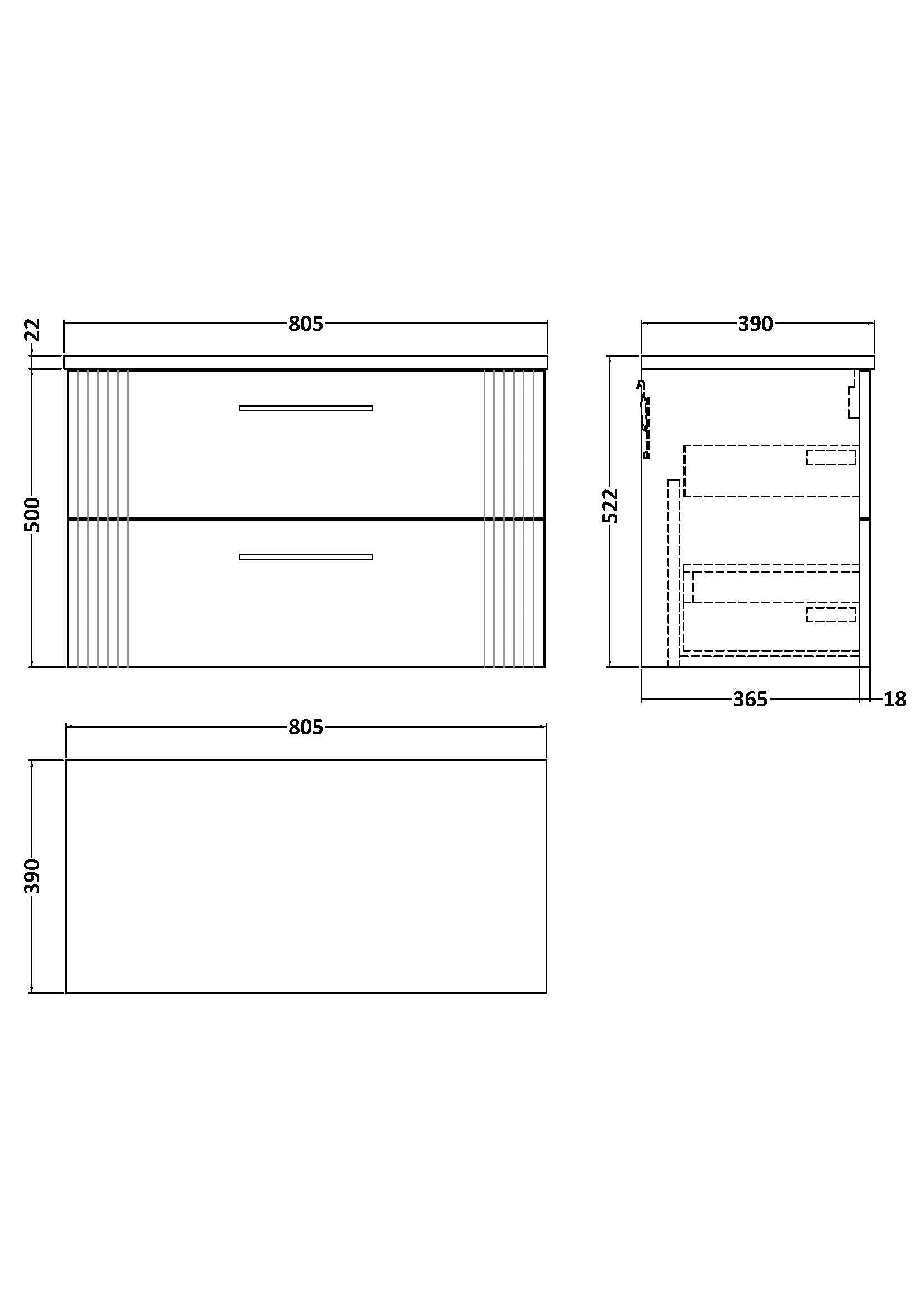 nuie Deco 800mm Wall Hung 2-Drawer Vanity & Laminate Top - Soft Black