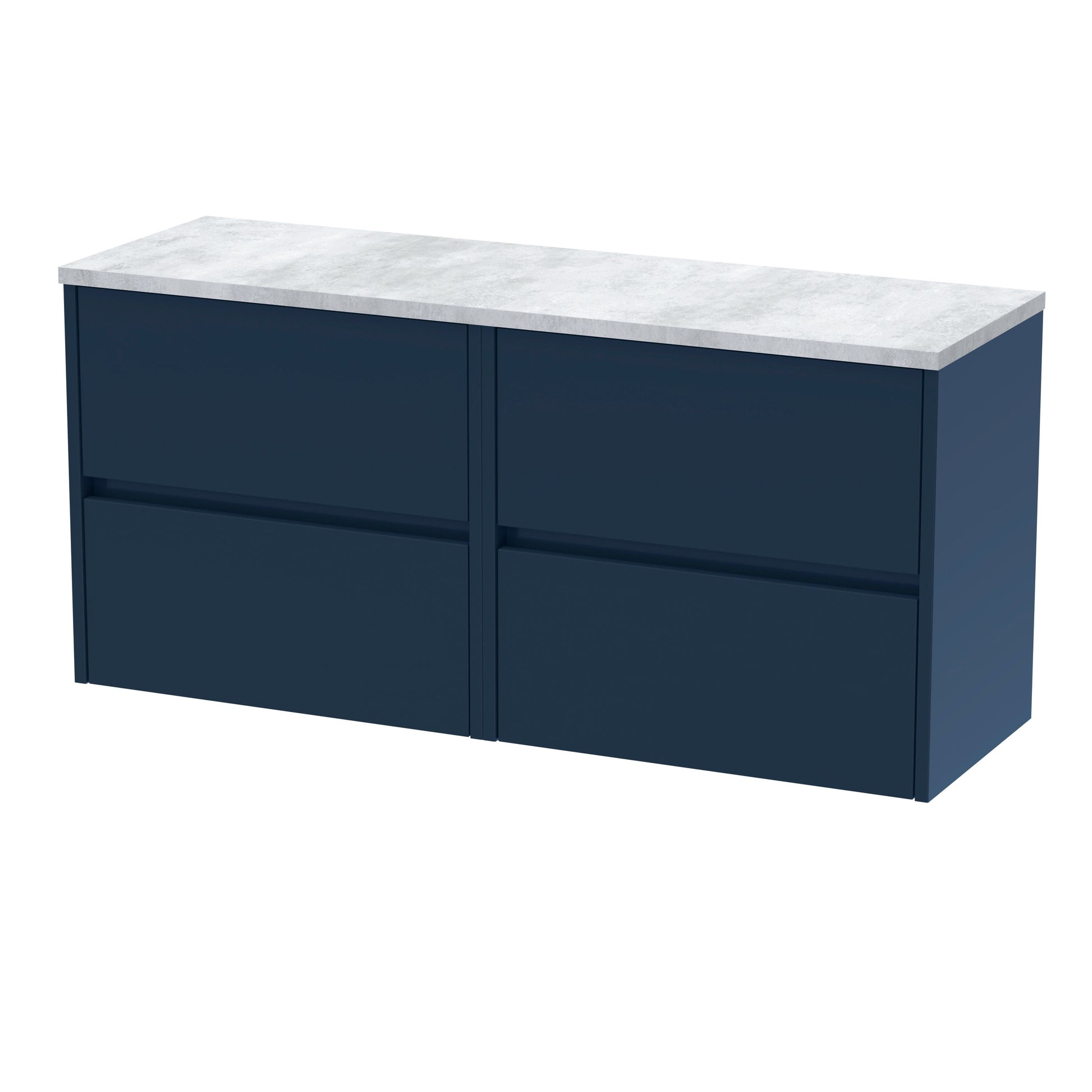 Nuie Havana 1200mm Midnight Blue Wall Hung 4-Drawer Unit With Laminate Worktop