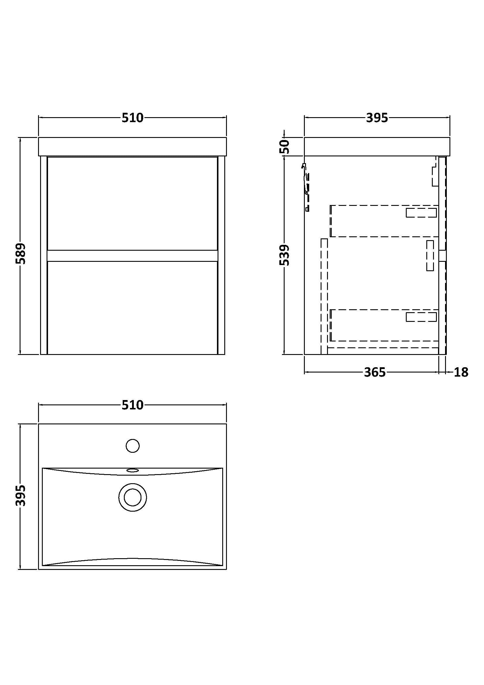 nuie Havana Wall Hung 2 Drawer Vanity Basin Unit & Thin-Edge Ceramic Basin, 500mm - Coastal Grey