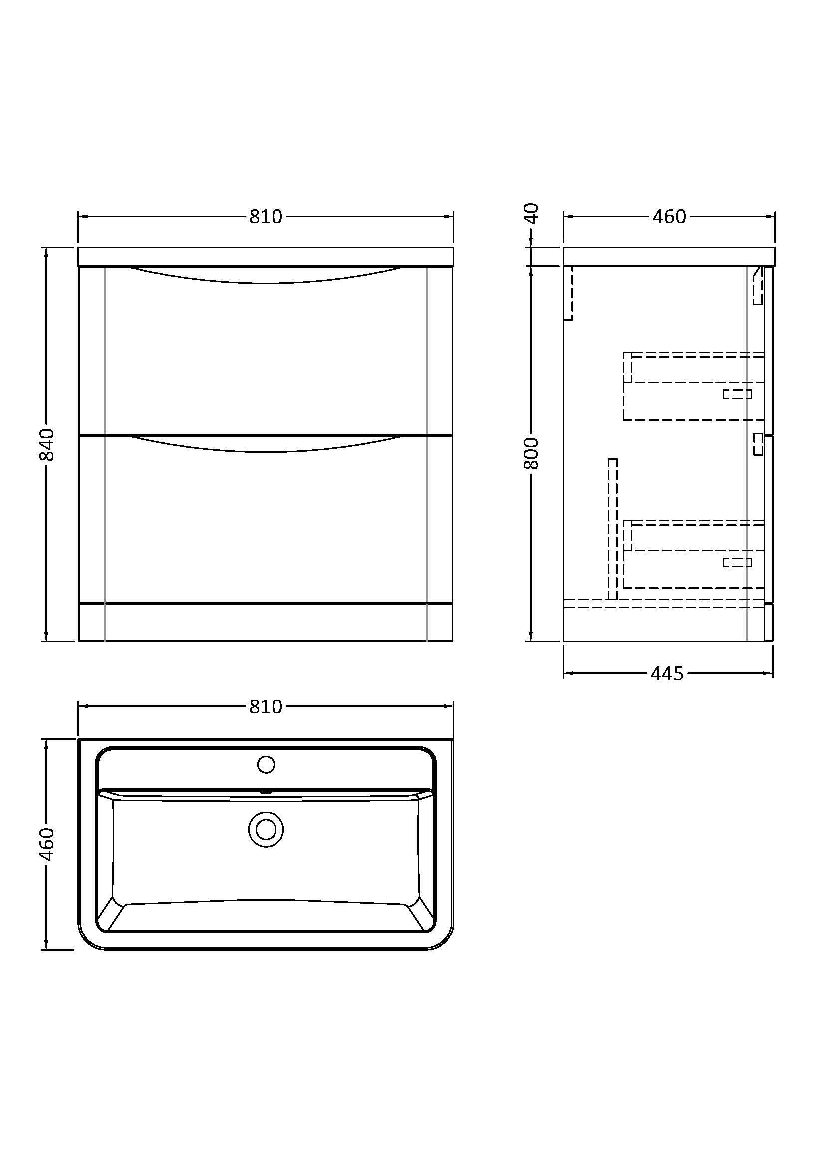 nuie Lunar Floor Standing 2 Drawer Unit & Ceramic Basin, 800mm - Satin Blue